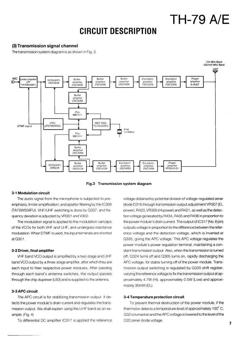 144/430(440)MHz FM DUAL BANDERTH-79 A/EKENWOODSERVICE MANUAL1994-6 PRINTED IN JAPANB51-8273-00(B)1401CONTENTSAntennaT90-0483-05DISASSEMBLY FOR REPAIR.....CIRCUIT DESCRIPTION.........Knob(VOL/PWR)DESCRIPTION OF COMPONENTS....15K29.4908-04SEMICONDUCTOR DATA......18Knob(ENC)PARTS LIST ...22K29-4907-04EXPLODED VIEW43PACKING45ADJUSTMENT....47Knob(VOL)TERMINAL FUNCTION530K29-4906-04WIRING DIAGRAM...55PC BOARD VIEWSKnob(PTT etc)K29-4909-02TX-RX UNITO57-440X-XX)(C/7)57TX-RX UNITX57-440X-XX)(D/7)57Front glassTX-RX UNITX57-440X-XX闪(E/7刀m59Knob(LOCK)B10-1214-24K29-4910-049TX-RX UNITOX57-440X-XX)(F/7)..CapMIC/SP)41444*60B09-0342-03TX-RX UNIT(X57-440X-XX)(G/7).....61TX-RX UNIT(X57-440X-XX)(A/7)....63Knob(KEY TOP)K29-4912-03TX-RX UNIT(X57-440X-XX)(B/7)........67SCHEMATIC DIAGRAM........71BLOCK DIAGRAM......81KENWOODCTCSS UNITX52-3290-00):TSU-8......83SC-41/42/43S0 FT CASE曰…83BT-9(BATTERY CAS83Plastic cabinet assy02-1806-03:K,PSPECIFICATIONSBACK COVERa02-1807-03:M.M2M3.M4,XA02-1844-03:T.E,E2,E3.E9Photo is TH-79A.