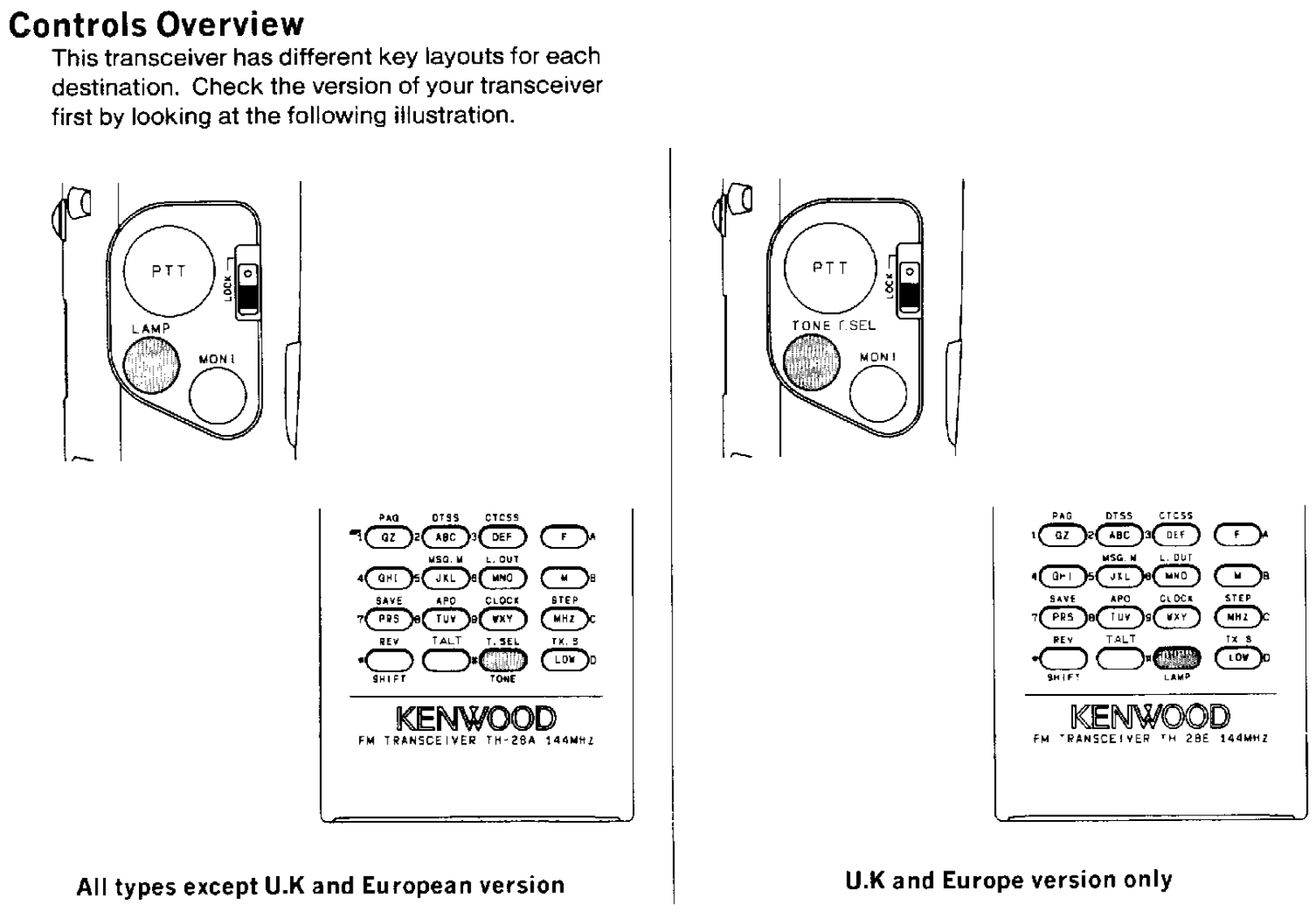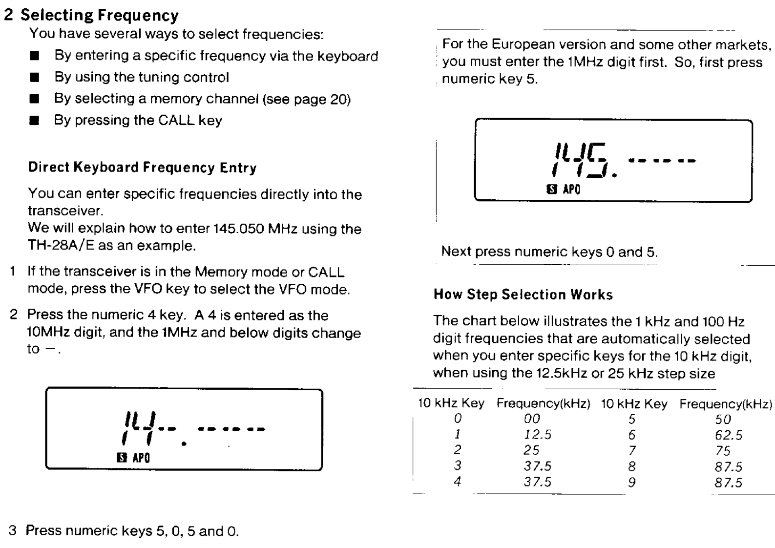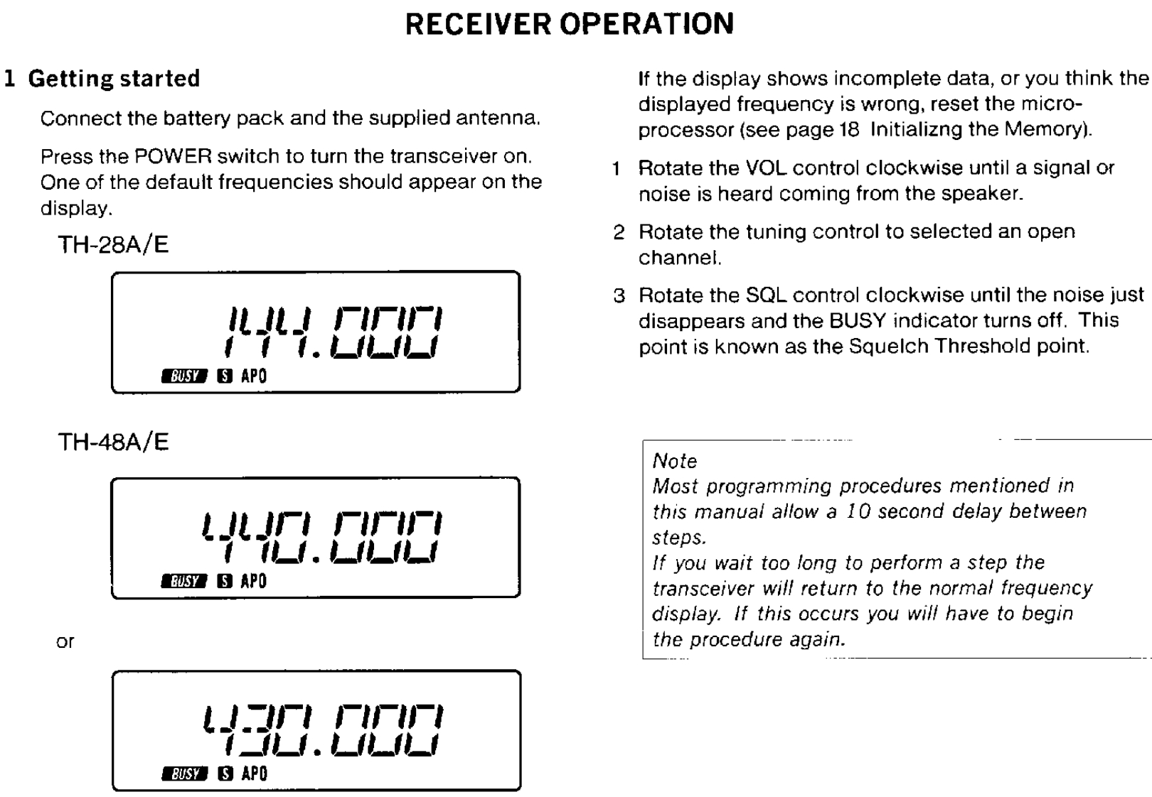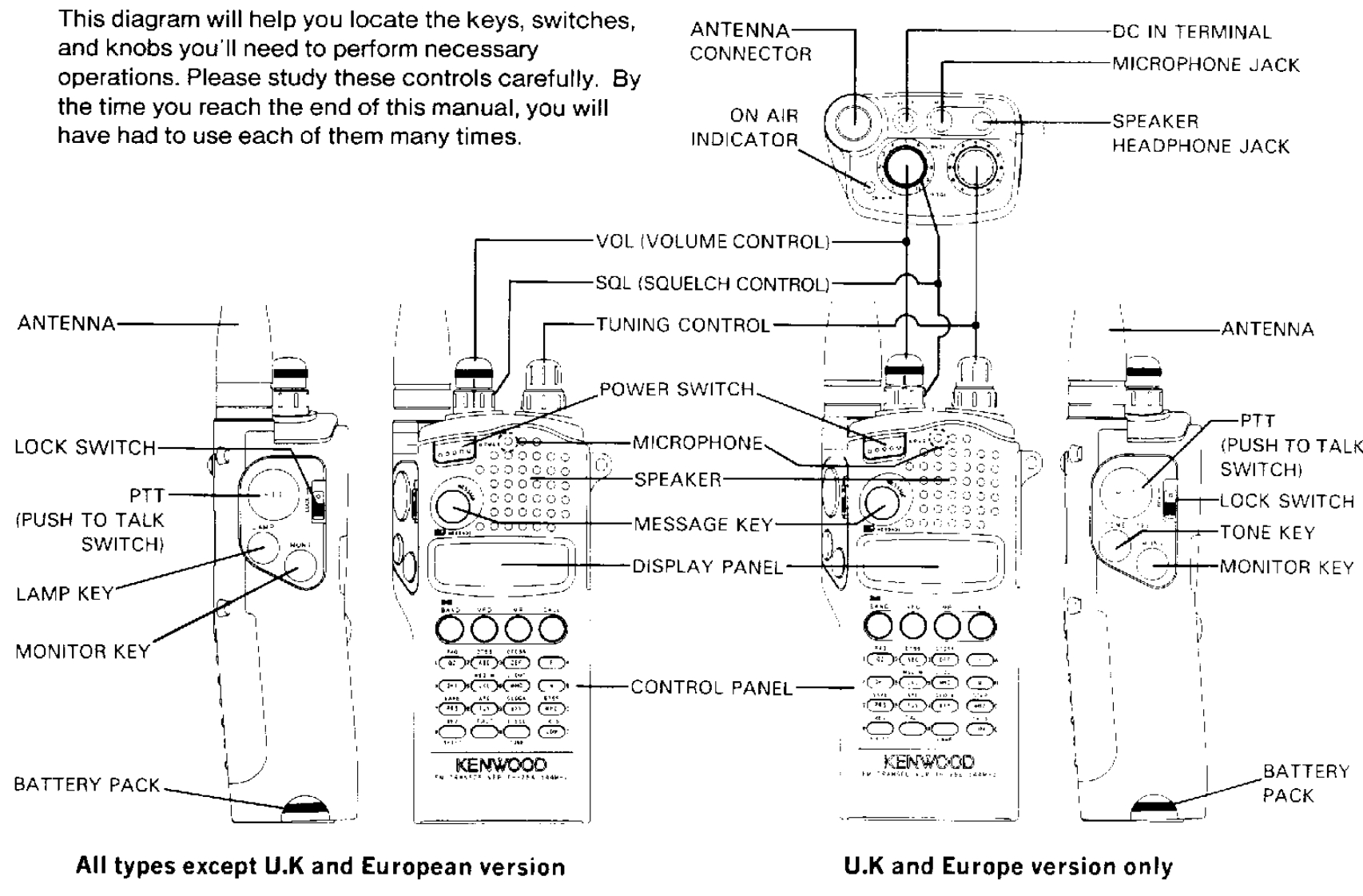 CONTENTSACCESSORIES55 Memory Contents.186 Entering Split Channel Frequencies ........19BEFORE OPERATION57 Entering The Call Channel Frequency ......19Controls Overview68 Recalling Memory Channels20THE BATTERY PACK9 Memory Shift .....201 NiCd Battery Pack (PB-13)10 Memory Channel Character Display ......2182 Recharging .......8SCANNING3 Installing The Battery Pack81 Hold/Resume Programming ....224 Battery Voltage Level92 Scan Options...,…·225 Battery Operating Time.........93Scanning Memory Channels23RECEIVER OPERATION4 Locking Out Memory Channels235 I1 Getting startedBand Scanning ........24102 Selecting Frequency6 Programmable Band Scan ..24117 MHz Scan3 Step Size Selection26128 VFO/Memory Scan4 Programmable VFO Tuning Limits2149 CALL/VFO Scan....5Subband Reception .....6....1410 CALL/Memory Scan26TRANSMITTER OPERATION11 V/M/C(VFO/Memory/CALL)Scan...261 To transmit.................15REPEATER OPERATION2 Changing Transmitter Output Power153 TX.Stop Function1 Transmitter Offsets.......27162 Selecting the Offset Direction4 Time Out Timer163 Automatic Offset Selection2USING THE MEMORY4 Manual Offset Selection1 Microprocessor Memory Backup175 The Reverse Function2 Entering Memory Data ..........176 Tone Operation ....3 initializing The Memory ..........187 Autopatch Operations .4 Memory Channel......188 DTMF Memory