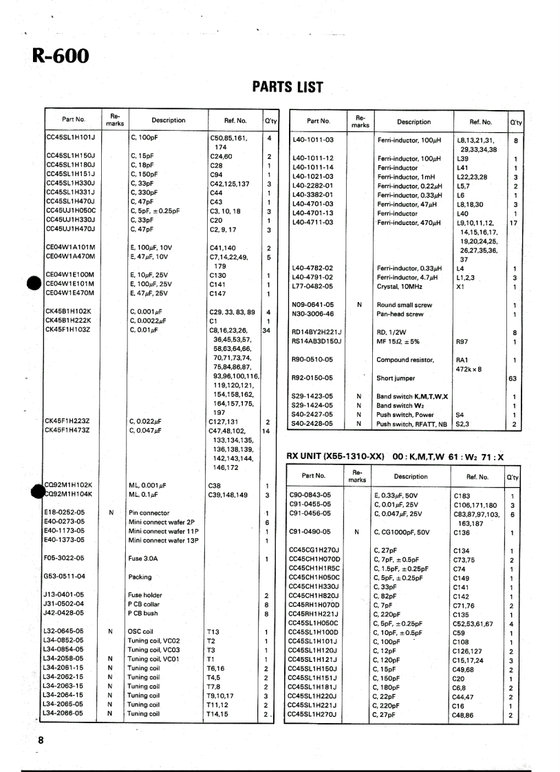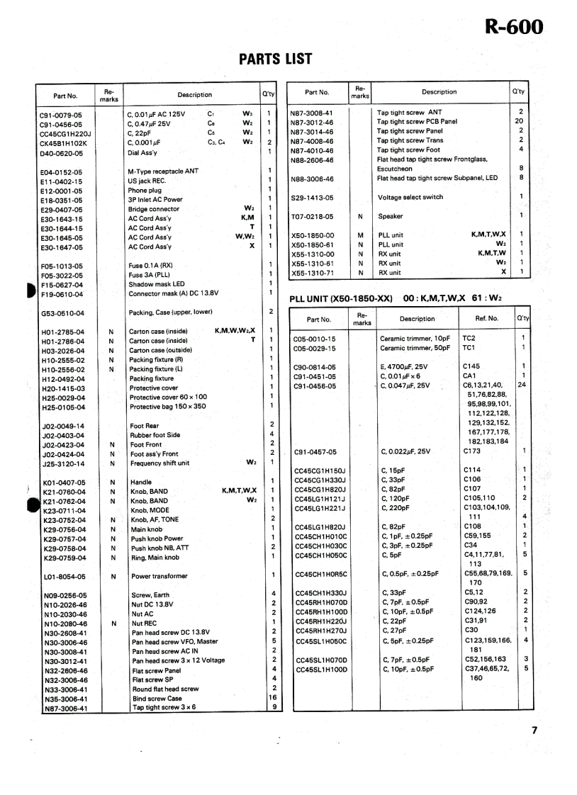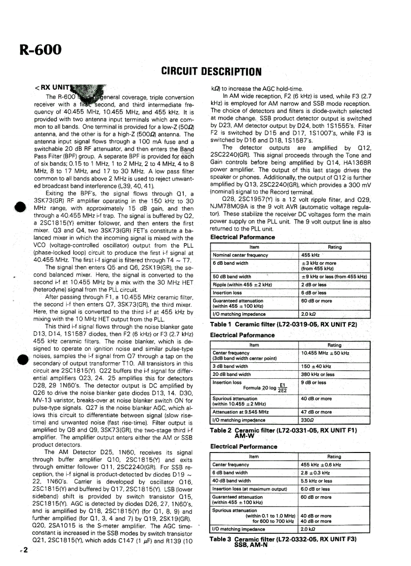 KENWOODSERVICEMANUALR-600COMMUNICATIONS RECEIVER●CONTENTSCIRCUIT DESCRIPTION.....BLOCK DIAGRAM....PACKING....5TERMINAL FANCTIONS19PARTS LIST…SCHEMATIC DIAGRAMPC BOARD/CIRCUIT DIAGRAMLEVEL DIAGRAM.PLLUNIT (50-1850-XX).10SPECIFICATIONS.2RX UNIT (X55-1310-XX)12DCK-1 DC CORD KIT PARTS LIST....2DISASSEMBLY.…FREQUENCY SHIFT UNIT(W2 only)...22ADJUSTMENT14