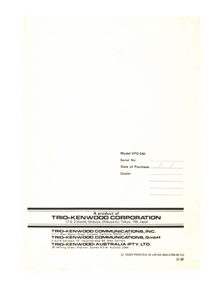 Kenwood_VFO-240_user操作说明书手册找手册网31天前发布关注私信4.24MB8页040Kenwood_VFO-240_user操作说明书手册此内容为付费资源,请付费后查看¥19¥21黄金会员免费钻石会员免费登录购买付费资源 第1页 / 共8页 第2页 / 共8页 第3页 / 共8页 第4页 / 共8页 第5页 / 共8页 第6页 / 共8页 第7页 / 共8页 第8页 / 共8页 已完成全部阅读,共8页 THE END建武 文本预览 HF REMOTE VFOVFO-240INSTRUCTION MANUALKENWOODTRIO-KENWOOD CORPORATIONCPRINTED IN JAPAN B50-8048-00(K,M,W,X)87/65432188/12111098765432 查看更多 收起部分 喜欢就支持一下吧收藏