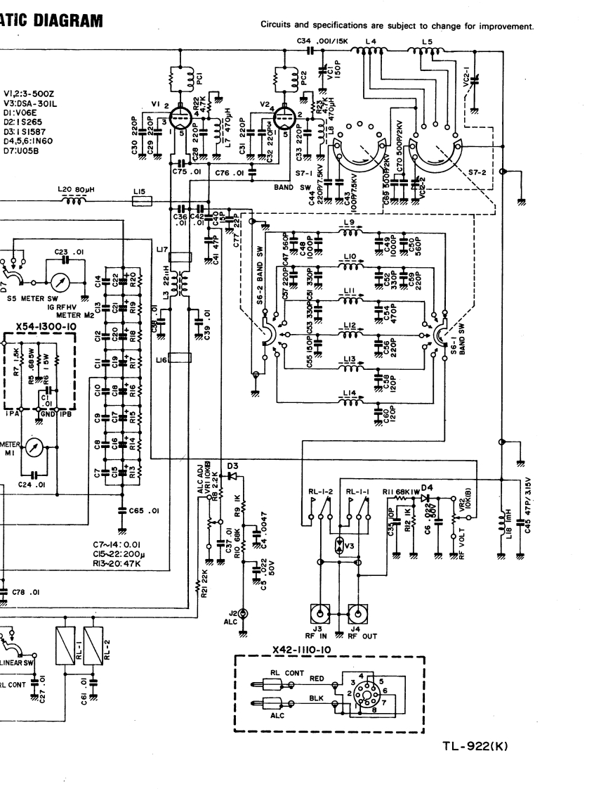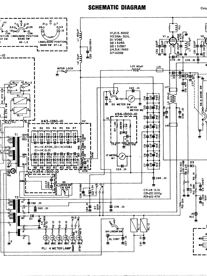 SCHEMATICSTBY02210073.5002828003.5.8V12:3IG POSITION1.8MHz BAND POSITIONLINEARMETER SWBAND SWV3:DS/S4$5S6-1,2I.8MH:BAND POSITIONDI:VOBAND SW S7-1.2D2:I SD3:I S045,613X54-1300-107:UOINTERLOCK13GRLI-I可RL2FAI50FANACC.2TERMINALDLI-ICONNECTIONDL-T5,IG240yFA2Ac3RL2_X43-1280-19心一1RIR2R3 R4R5R6R7MWwwwTI1200D58RED6RI~14:470K,DI~14:VO8Jc1wl40.01TMIc14METERHMID90i1D14的的的的号3X54-3000TH2ACRL-2-I20W240VCWT2C62.0180009060c63C788D1RL2S4 LINEAR SY③③③RL CONTPLI4 METER LAMP6加