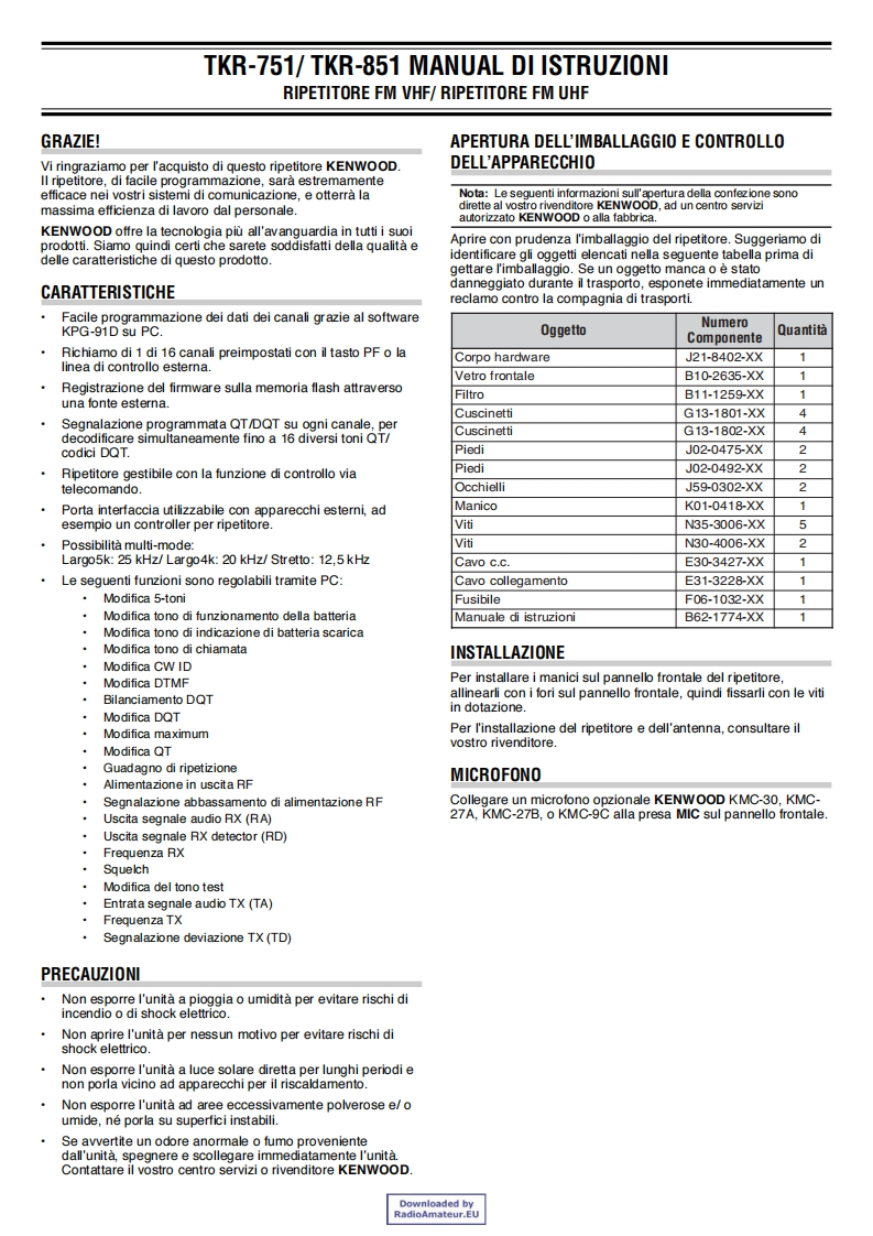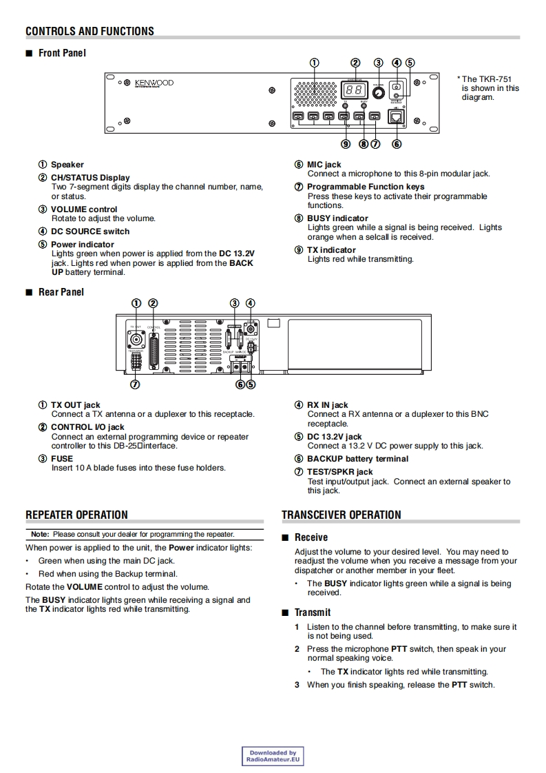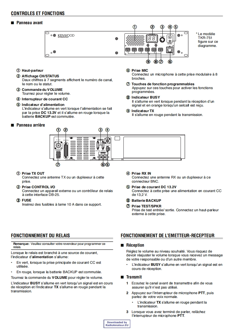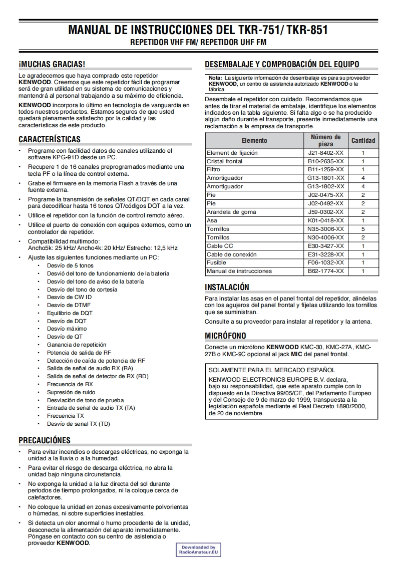 TKR-751/TKR-851VHF FM REPEATER/UHF FM REPEATERINSTRUCTION MANUALKENWOODRELAIS FM VHF/RELAIS FM UHFMODE D'EMPLOIREPETIDOR VHF FM/REPETIDOR UHF FMMANUAL DE INSTRUCCIONESRIPETITORE FM VHF/RIPETITORE FM UHFMANUAL DI ISTRUZIONIVHF-FM-REPEATER/UHF-FM-REPEATERBEDIENUNGSANLEITUNGVHF FM REPEATER/UHF FM REPEATERGEBRUIKSAANWIJZING©B62-1774-00(E)09080706050403020100Downloaded byRadioAmateur.EU