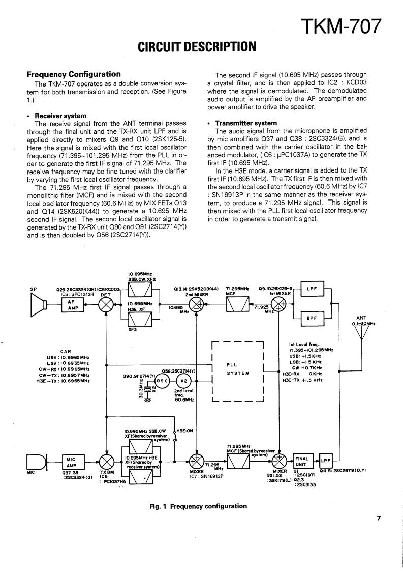 SSB RADIOTELEPHONEKENWOODTKM-707SERVICE MANUAL1989-11 PRINTED IN JAPANB51-8037-00(O)638KnobKnob (POWER SW)Panel ass'y (DRESSING PANEL)(K29-4540-14)(K29-4519-04)(A20-7061-04)Panel ass'yMetallic cabinetFront glassKnobKnob(A20-7045-13)(A01-1086-02)(B10-1129-14)(K29-4540-14)×4(K29-4539-04)×2KENWOOD2.782.0E-[HTM7●MicrophoneCap (PHONES)KnobKnob (MAIN DIAL)Foot(T91-0388-05)(B09-0320-04)(K29-4540-14)x5{K29-4538-03)(J02-0323-05)X4CONTENTSMAINTENANCE AND ADJUSTMENT ......2TX-RX UNIT(X57-3470-10).93INSTALLATION INSTRUCTIONS.....5.FINAL UNIT(X45-3370-10).101CIRCUIT DESCRIPTION.SCHEMATIC DIAGRAM............105DESCRIPTION OF COMPONENTS...............27MAT-100 (AUTOMATIC ANTENNA TUNER)PARTS LST..............33Circuit Description108EXPLODED VIEW...............63Bl0 ck Diagram…122PACKING……65Description of Components123ADJUSTMENT.........,66Parts List.…124LEVEL DIAGRAM..........76Exploded View…129BLOCK DIAGRAM……77PC Board ViewTERMINAL FUNCTION..................81LED UNIT(W02-0844-08).130CIRCUIT DIAGRAMS PC BOARD VIEWSANT MODULE UNIT (W02-0883-08)...........131LCD ASSY(B38-0324-05).83Schematic Diagram133VC0(X58-3720-10).…83Installation Instructions...........136DC-DC(X59-1100-00)…84Manual Tuning.........140FAN TEMP PROTECTION(X59-3370-00).....84Specifications.........…141VC0(X59-3440-00).84SPECIFICATIONS.BACK COVERCONTROL UNIT (X53-3280-10)........................85