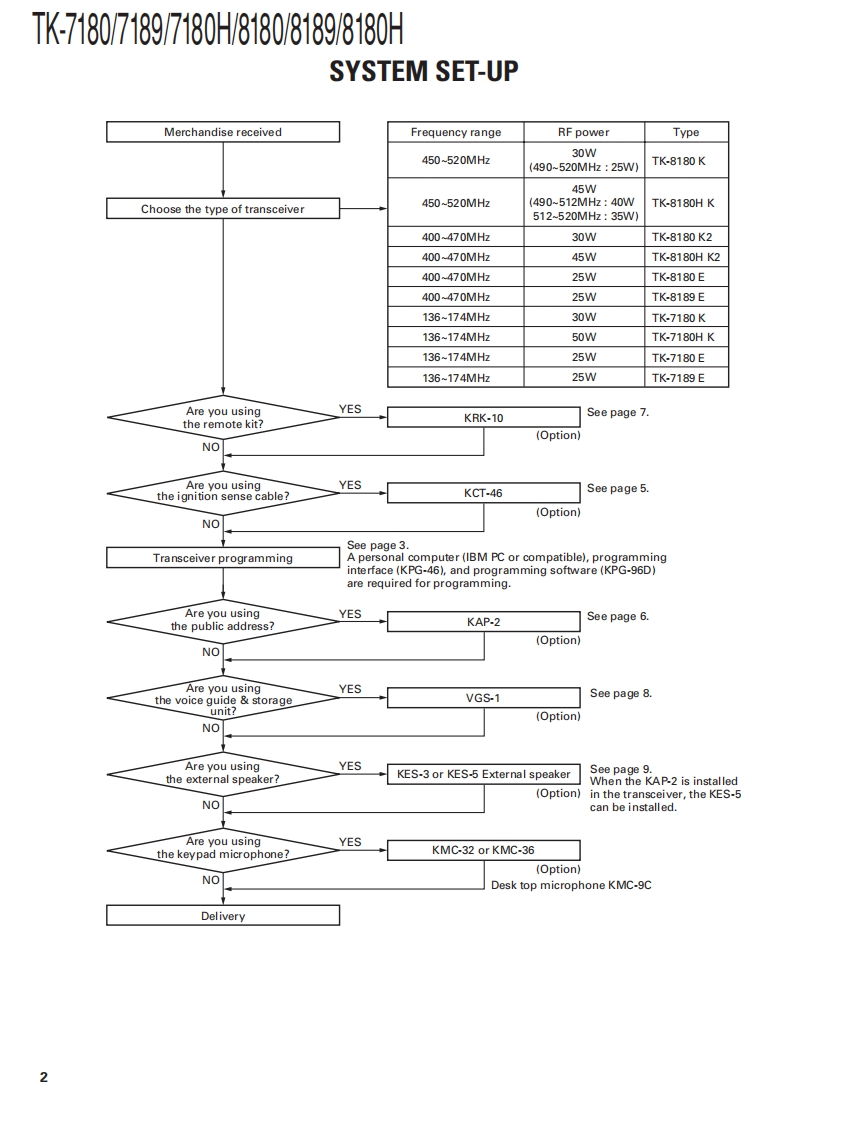 VHF FM TRANSCEIVERTK-7180/7189/7180HKENWOODUHF FM TRANSCEIVERKenwood CorporationTK-8180/8189/8180HSERVICE MANUAL ADDENDUM II2005-12 PRINTED IN JAPANB51-8732-10(N)PDFMPT Trunking VersionUse this service manual together with the following ser-vice manuals..TK-7180 service manuals(B51-8691-00,B51-8712-00andB51-8713-00)TK-7189 service manual (B51-8713-00).TK-7180H service manual (B51-8736-00).TK-8180 service manuals (B51-8692-00,B51-8702-00.B51-8712-00andB51-8714-00.TK-8189 service manual (B51-8714-00)TK-8180H service manual (B51-8735-00)CONTENTSSYSTEM SET-UP.2REALIGNMENT…INSTALLATION…5ADJUSTMENT.…12TK-7180/7189/7180H…17TK-8180/8189/8180H.23LFLFThis product uses Lead Free solder.