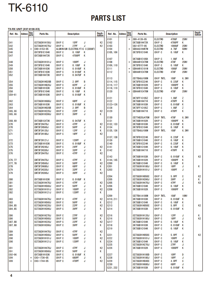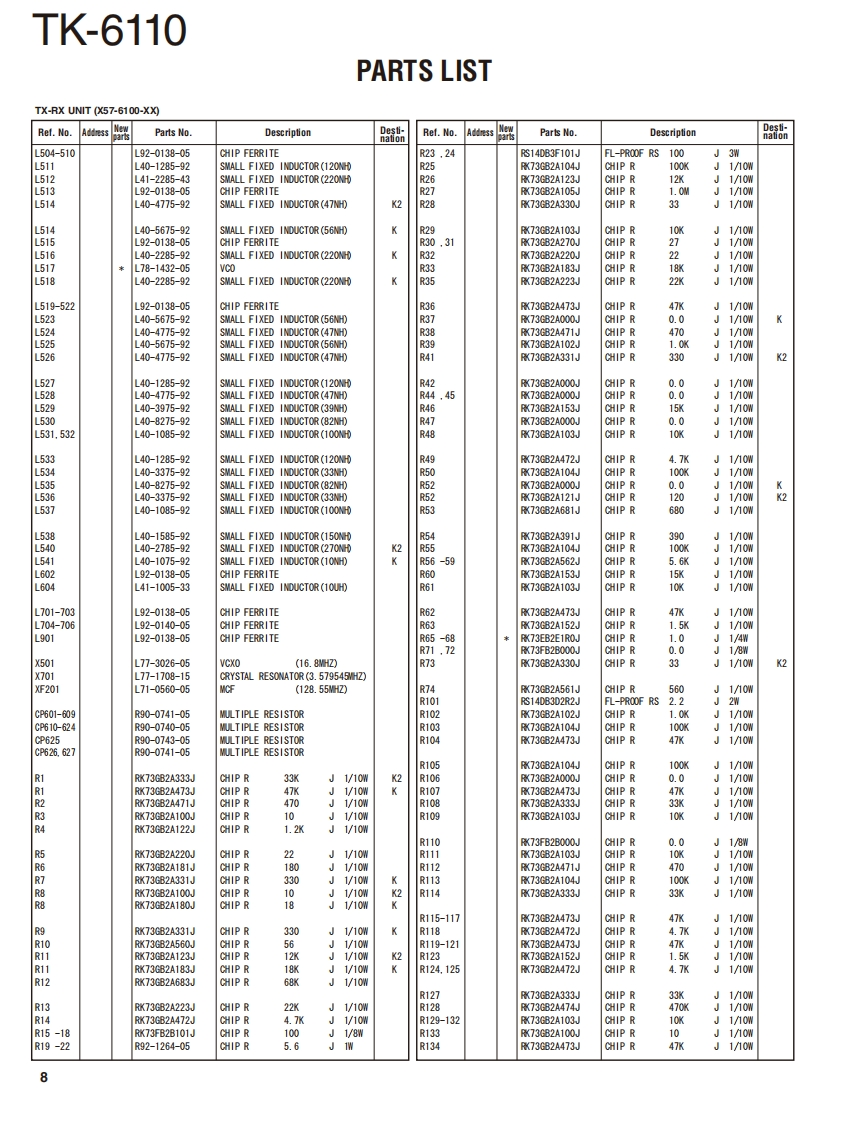 VHF FM TRANSCEIVERTK-6110KENWOODKenwood CorporationSERVICE MANUALSUPPLEMENT2011-1 PRINTED IN JAPANB51-8956-00Y)PDFThis service manual(B51-8956-00)has been revised due to the modification of the Final Transistor and issues it as asupplemental manual.This service manual applies to products with A8B00001 or subsequent serial numbers.Refer to the TK-6110 servicemanual for any information which has not been covered in this manual.Microphone(T91-0621-35)Cabinet(A01-2170-23)KENWOOOKENWOOD:Knob(VOL)Key topPanel assy(K29-5389-03)(K29-5388-02)(A62-0761-13)CONTENTSSYSTEMSETUP2PC BOARDDISASSEMBLY FOR REPAIR.....TX-RX UNIT (X57-6100-XX)..20PARTS LIST3TX-RX SECTION...20EXPLODEDDISPLAY SECTION..24PACKING14SCHEMATIC DIAGRAM........26LFThis product complies with the RoHS directive for the European market.This product uses Lead Free solder.