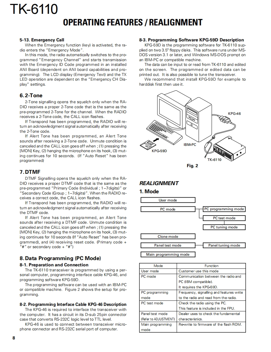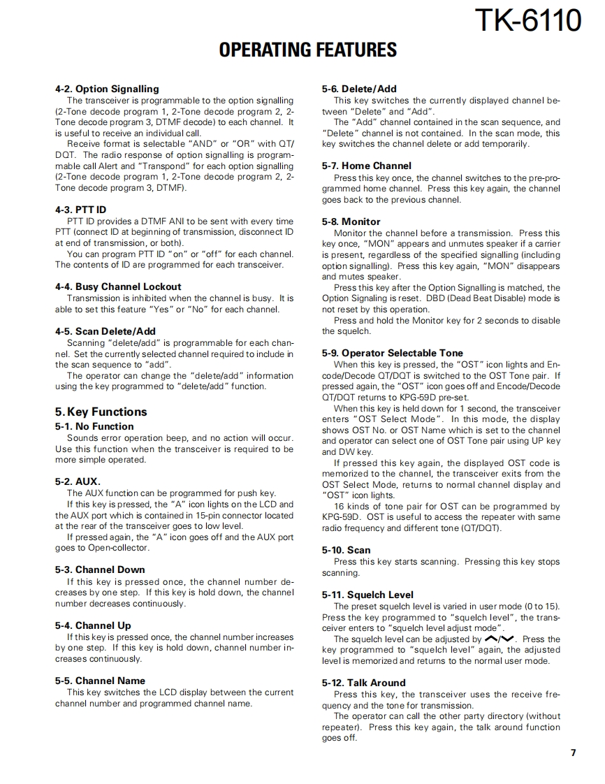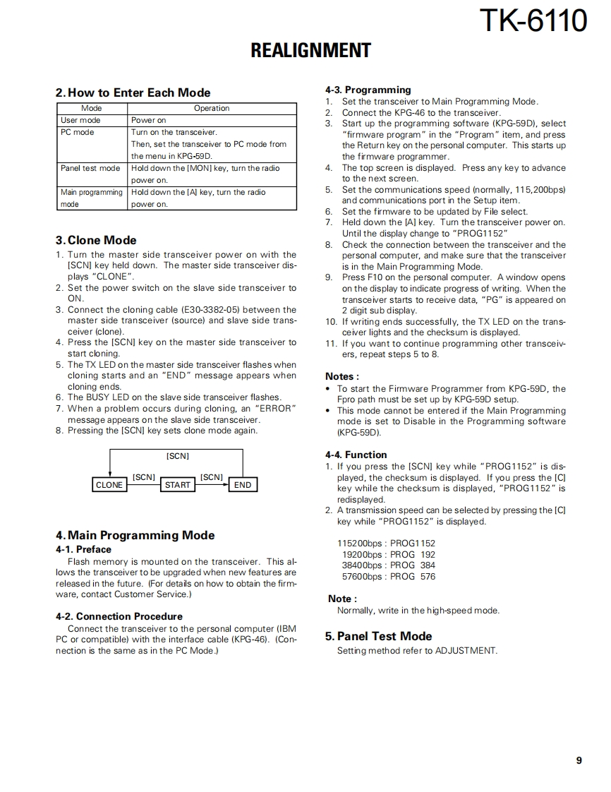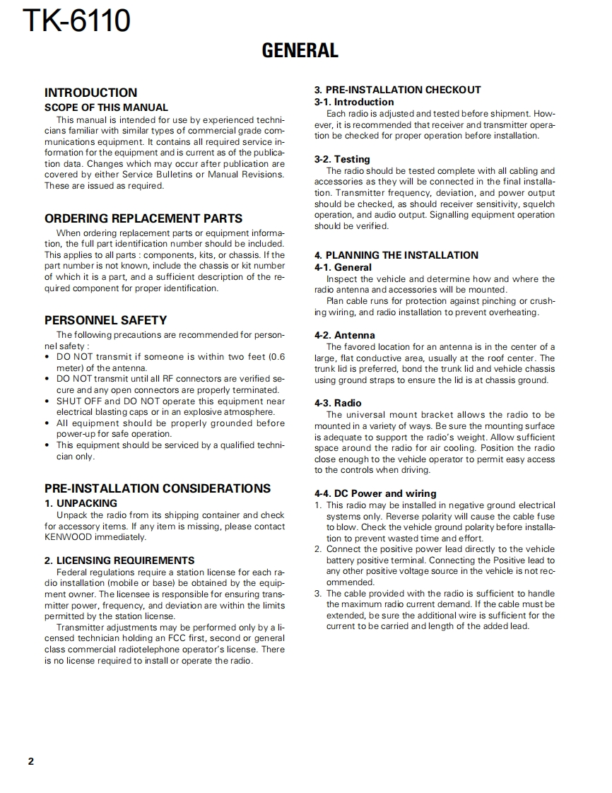 VHF FM TRANSCEIVERTK-6110KENWOODSERVICE MANUAL2000-6 PRINTED IN JAPANB51-8519-00(N)1113Microphone(T91-0621-05)Cabinet(A01-2170-03)KENWOOOCASCNKENWOODKnob (VOL)Key topPanel assy(K29-5389-03)(K29-5388-02)(A62-0761.13)CONTENTSGENERAL..2PACKING…32SYSTEM SET-UP.3ADJUSTMENT..33OPERATING FEATURES.................4TERMINAL FUNCTION40REALIGNMENT…8PC BOARD VIEWSINSTALLATION…10TX-RX UNIT(X57-6100-XX)A/3,C/3).41CIRCUIT DESCRIPTION…13TX-RX UNIT(X57-6100-XX)(B/3).47SEMICONDUCTOR DATA...........18SCHEMATIC DIAGRAM.51DESCRIPTION OF COMPONENTS..........20BLOCK DIAGRAM.57PARTSSPECIFICATIONS.59EXPLODED VIEW31