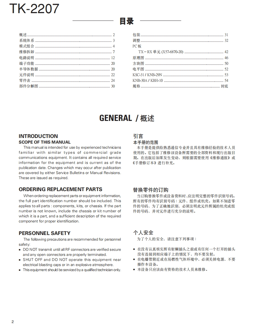 Kenwood_TK-2207_serv维修手册含电器原理图
