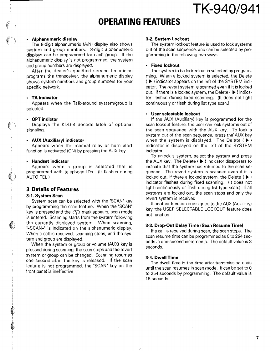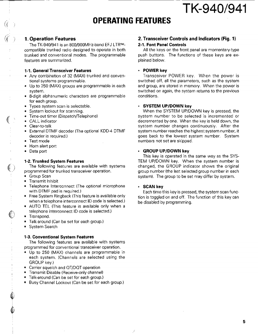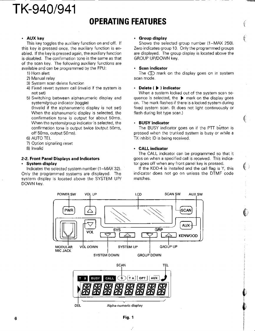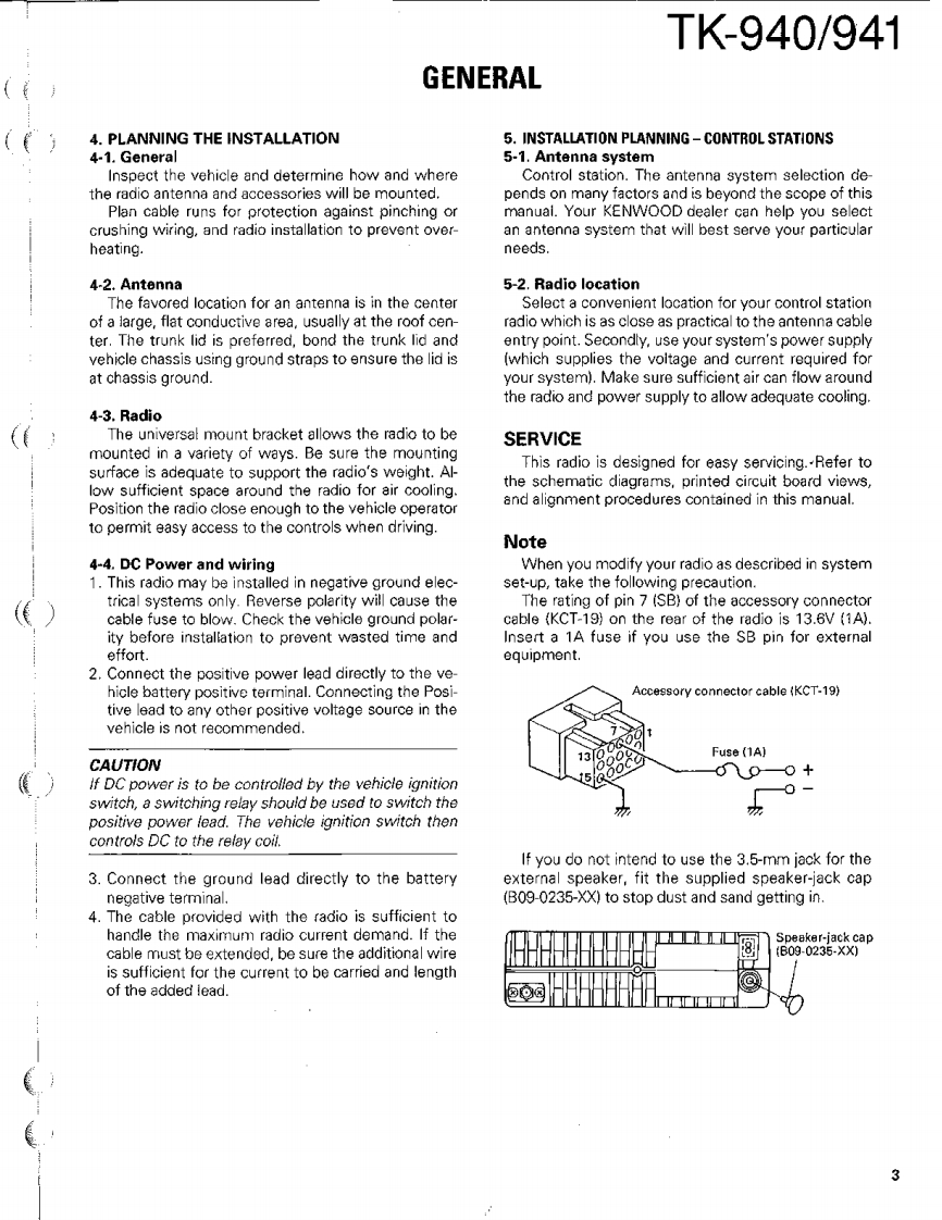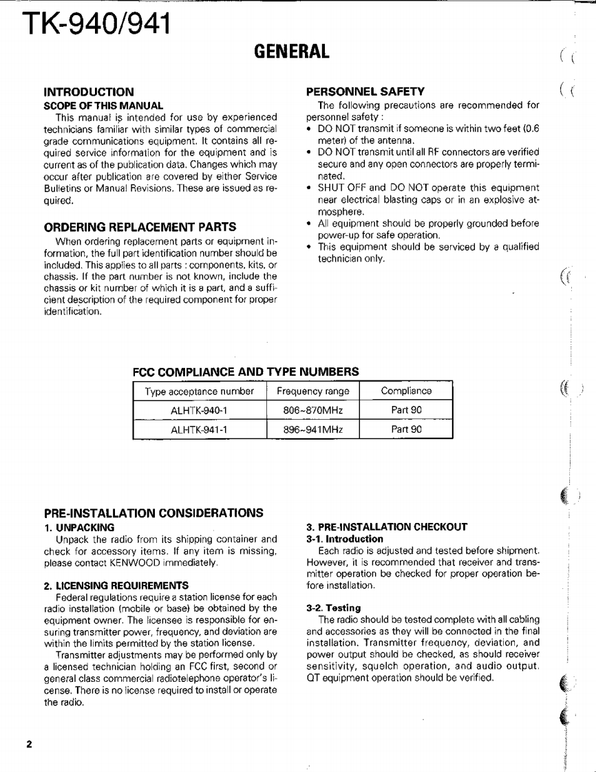 800MHz/900MHz FM TRANSCEIVERTK-940/941KENWOODSERVICE MANUAL1994-8 PRINTED IN JAPANB51-8281-00(N)1219Microphone(T91-0362.15)Metatlic cabinet(A01-1065-03)KENWOOD安T可元KENWOODCurl cordPanel assyKey top(E30-2089-081(A62-0349-03}(K29-4928-02)CONTENTSGENERAL.......42ADJUSTMENT.…57SYSTEM SET-UP…4TERMINAL FUNCTION.63OPERATING FEATURES.....................5PC BOARD VIEWSINSTALLATION416LCD ASSY(B38-0731-05).65BLOCK DIAGRAM....23PLL/VC0(X58-4170-XX).66LEVELDIAGRAM...5TX-RX UNIT(X57-4590-XX)(B/2).67CIRCUIT DESCRIPTION...............27TX-RX UNIT(X57-4590-XX)(A/2)…71SEMICONDUCTOR DATA...................................34SCHEMATIC DIAGRAM7DESCRIPTION OF COMPONENTS......39SPECIFICATIONS.....83PARTS LIST…41KCT-19 (ACCESSORY CONNECTION CABLE]...BACK COVEREXPLODED VIEW.444*55KDD-4(DTMF DECODER)...........BACK COVERPACKING...........56KPG-25D (PROGRAMMING DISK)....BACK COVER