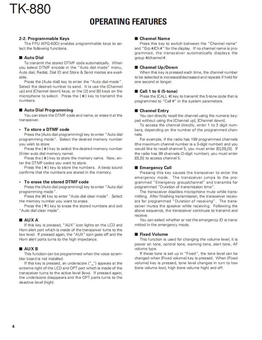 UHF FM TRANSCEIVERTK-880KENWOODSERVICE MANUALREVISEDE·E3-E4 versions2002-2 PRINTED IN JAPANB51-8524-20(N)387This Service Manual was revised based on the servicemanual as per parts No.B51-8524-10,in order to includenew variants with the following destination codes:E4.Panel assyCabinet(Upper)Key top(A62-0642-03)(A01-2165-23)(K29-9105-021KENWOODKENWOODDDCALLCONTENTSGENERAL..…2PLL/VC0(X58-4722-XX)..56OPERATING FEATURES.3SUB UNIT(X58-4850-10).56REALGNMENT.16TX-RX UNIT(X57-6152-XX)(A/21:E,E4..57INSTALLATION.......19TX-RX UNIT(X57-6152-XX)(B/2):E,E4..63CIRCUIT DESCRIPTION.26TX-RX UNIT(X57-6372-70)A/2):3.…67SEMICONDUCTOR DATA...31TX-RX UNIT(X57-6372-70)(B/2):3.…73DESCRIPTION OF COMPONENTS.33SCHEMATIC DIAGRAM (E,E4).........77PARTS LIST…35SCHEMATIC DIAGRAM (E3).........85EXPLODED VIEW.....45BLOCK DIAGRAM.....93PACKING46LEVEL DIAGRAM..96ADJUSTMENT…47TERMINAL FUNCTION98PC BOARD VIEWSSPECIFICATIONS....................99