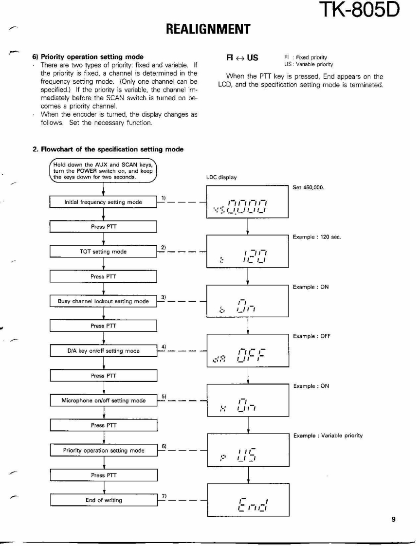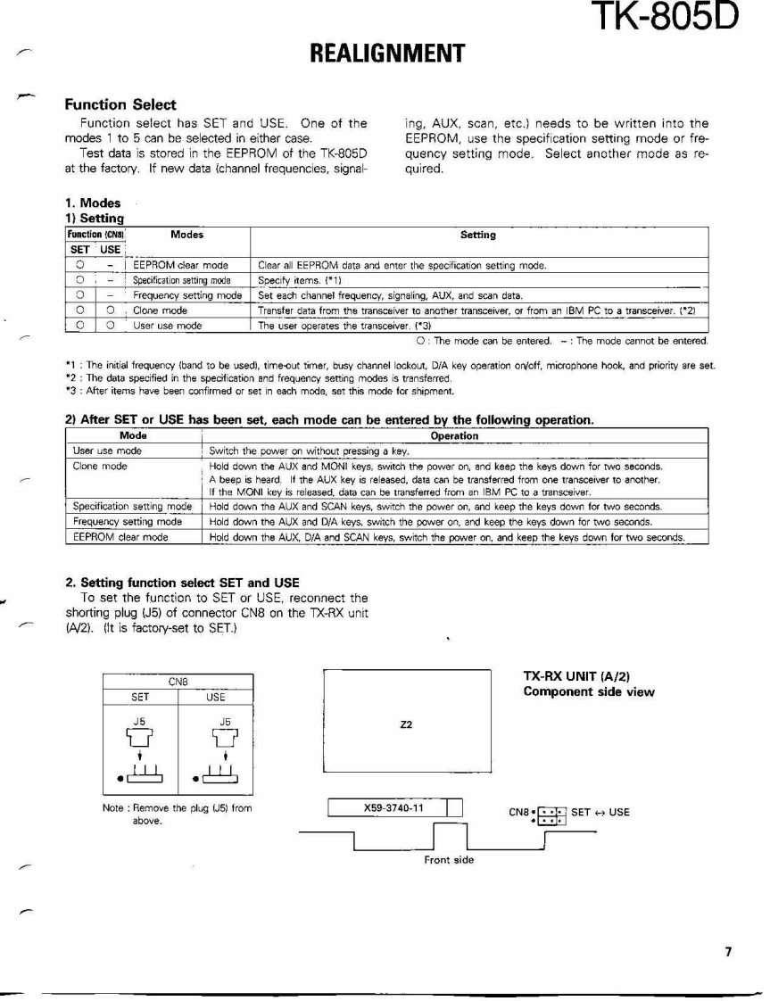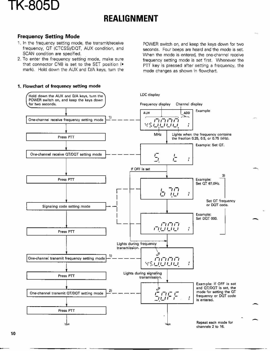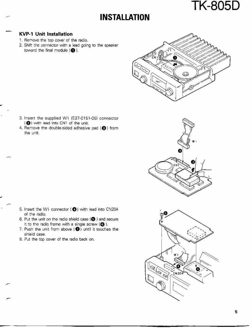 COMPACT SYNTHESIZED UHF FM TWO-WAY RADIOTK-805DKENWOODSERVICE MANUAL1991-3 PRINTED IN JAPANB51-8108-00(O)1139Microphone(T91-0362-151:K,K2.K3,K4(T91-0509-05):M,M2.M3,M4KENWOODKnob (POWER)Knob (VOL)KnobKnob (CH)Panel ass'y(K27-3052-04)K29-4534-04{K29-4535-04)×5K29-4533-04j(A62-0093-03)Photo is K.K2,K3,K4 type.CONTENTSGENERAL.42PACKING…47SYSTEM SET-UP,4ADJUSTMENT............48INSTALLATION5TERMINAL FUNCTIONS52MODIFICATION..6CIRCUIT DIAGRAMS/PC BOARD VIEWSREALGNMENT....7PLL(X58-3700-XX)4-53DISASSEMBLY FOR REPAIR..........21APC(X59-3130-00.55LEVEL DIAGRAMHPF(X59-3740-11】…55BLOCK DIAGRAM…23TX-RX UNIT (X57-3850-XX).....56CIRCUIT DESCRIPTON..25SCHEMATC DIAGRAM....59SEMICONDUCTOR DATA.......…30KVP-1 (DIGITAL RECORDING UNIT)463DESCRIPTION OF COMPONENTS32KPG-4 (PROGRAMMING INTERFACE).....69PARTS UIST4…33SPECIFICATIONS.BACK COVEREXPLODED VIEW.....46