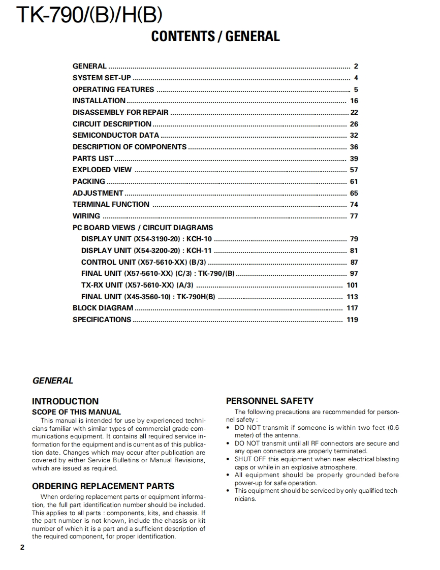 VHF FM TRANSCEIVERTK-790/(B)KENWOODTK-790H(B)SERVICE MANUALREVISED2001-6 PRINTED IN JAPANB51-8438-10(N)1234This service manual applies to products with 30300001 or subsequent serial numbers.(KCH-10 and KCH-11 are applicable tothe productions June 2001 and after.)In terms of the products with the serial numbers earier than 30300001,refer to the TK-790/(BV/H(B)service manual as perpart No.B51-8438-00 and the TK-790(B)service manual as per part No.B51-8456-00.TK-790 or TK-790(B)with KCH-10Cabinet(Upper)Panel assy(A01-2161-02)(A62-0606-13)KENVOODEIRECabinet (Lower)Knob(A01-2162-02)(K29-4664-04)x2KCH-11KENWOODKnob(K29-4664-04)x2Panel assy(A62-0607.-13)Cabinet(Upper)TK-790H(B)(A01-2163-01)Cabinet (Lower)(A01-2164-01)