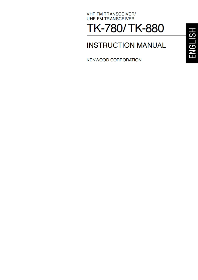 TK-780/TK-880KENWOODVHF FM TRANSCEIVER/UHF FM TRANSCEIVERINSTRUCTION MANUALEMETTEUR-RECEPTEUR FM VHF/EMETTEUR-RECEPTEUR FM UHFMODE D'EMPLOITRANSCEPTOR FM VHF/TRANSCEPTOR FM UHFMANUAL DE INSTRUCCIONESVHF-FM-TRANSCEIVER/UHF-FM-TRANSCEIVERBEDIENUNGSANLEITUNGRICETRASMETTITORE FM VHF/RICETRASMETTITORE FM UHFMANUALE DI ISTRUZIONIVHF FM ZENDONTVANGER/UHF FM ZENDONTVANGERGEBRUIKSAANWIJZINGKENWOOD CORPORATION©B62-1438-10(目090807060504030201