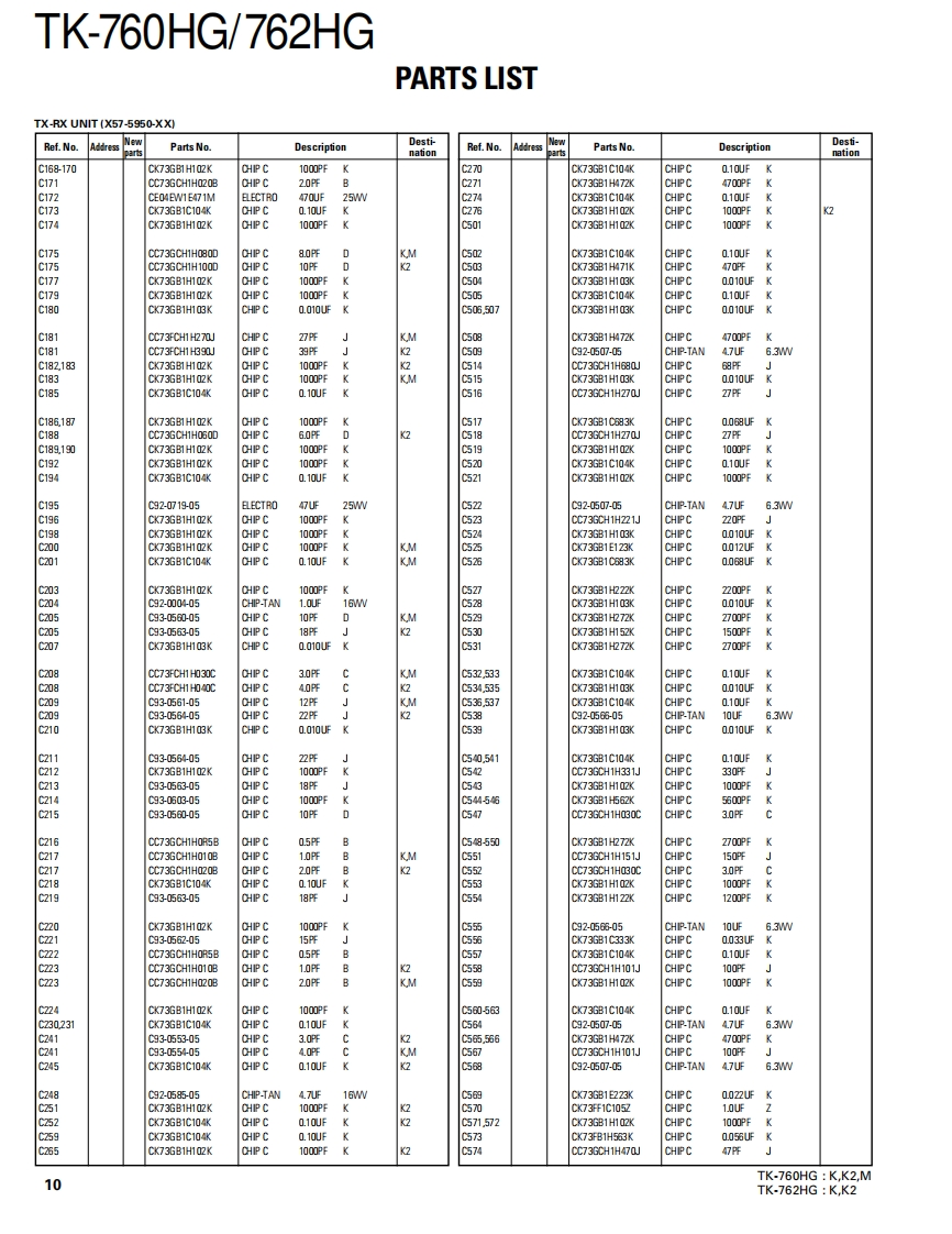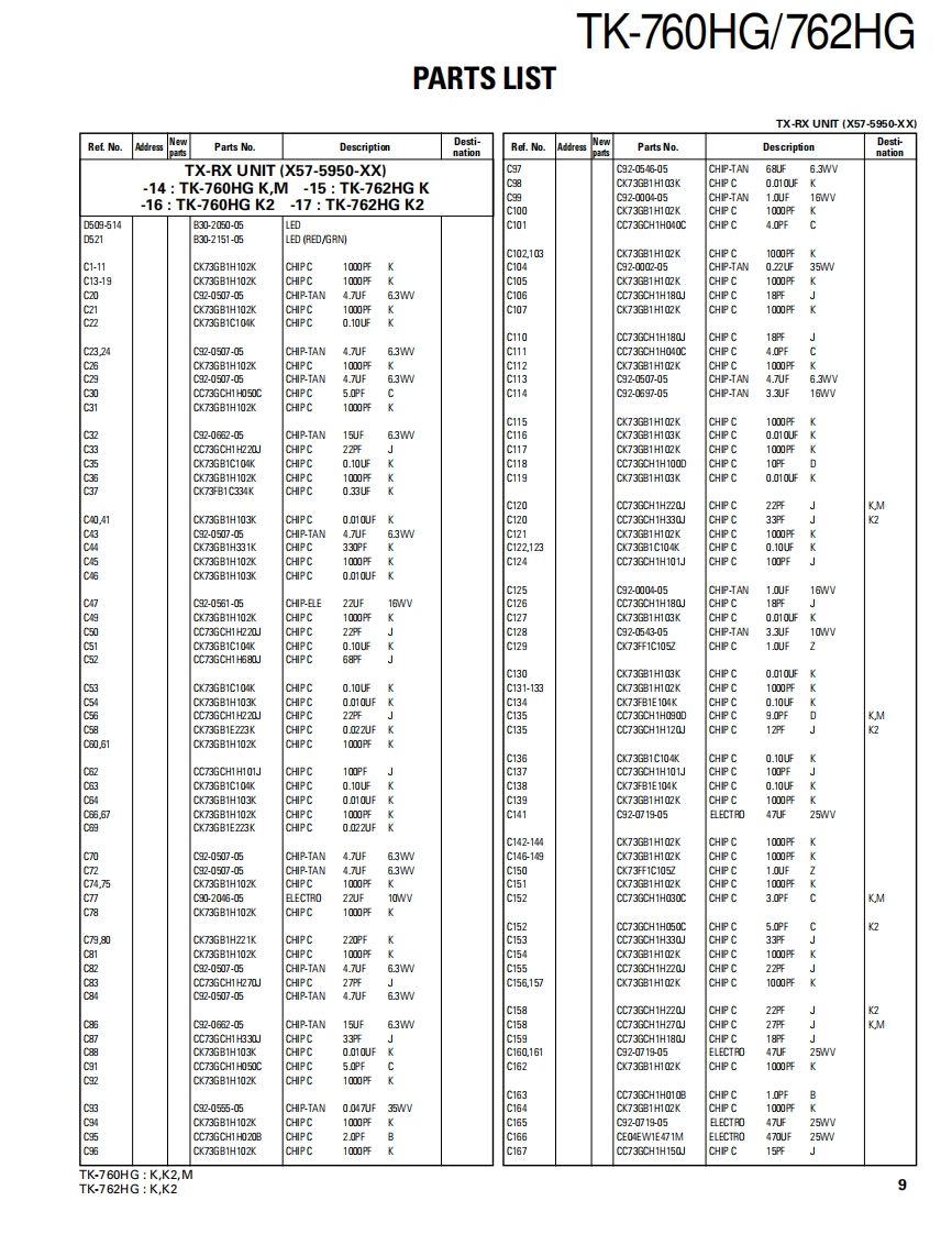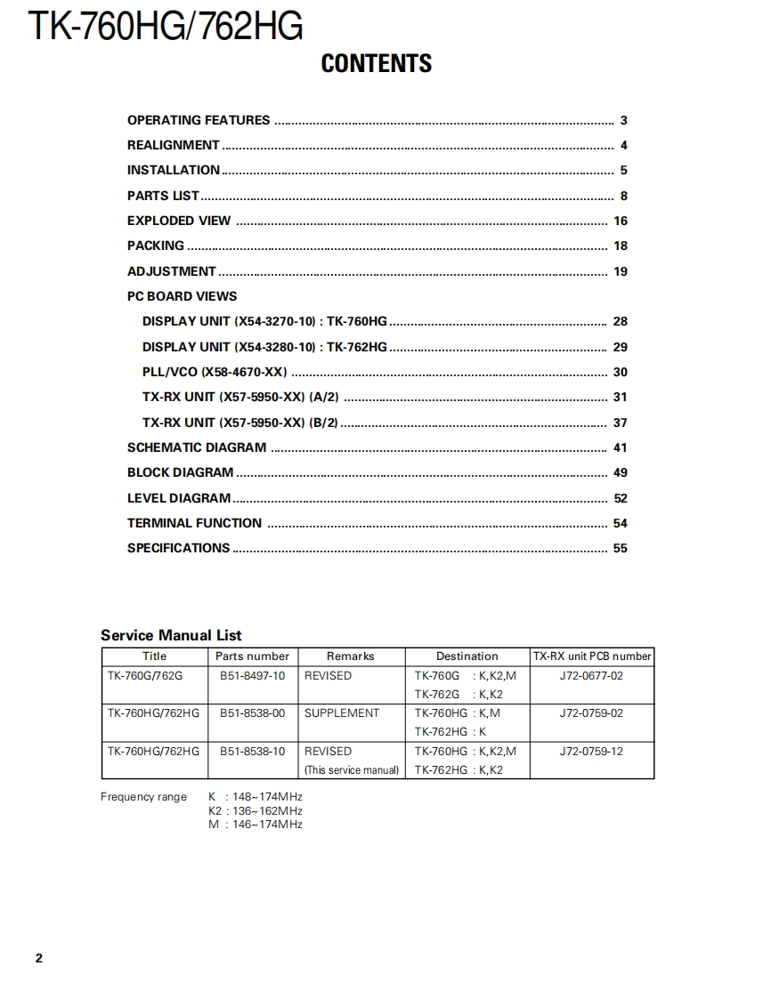 VHF FM TRANSCEIVERTK-760HG/762HGKENWOODSERVICE MANUALREVISED2000-10 PRINTED IN JAPANB51-8538-10(N)1724This service manual is the same as the K and M market,TK-760HG/762HG (B51-8538-00)service manual with the exception of new K2marketTK-760HG (K)Microphone(T91-0621-05)Cabinet(Upper)(A01-2165.13)Panel assy(A62-0642-03)Key top(K29-5343-02)10MONTK-762HG (K)Microphone(T91-0621-05)Cabinet (Upper)(A01-2165-13)Panel assy(A62-0731-03)Key top(K29-5344-02)