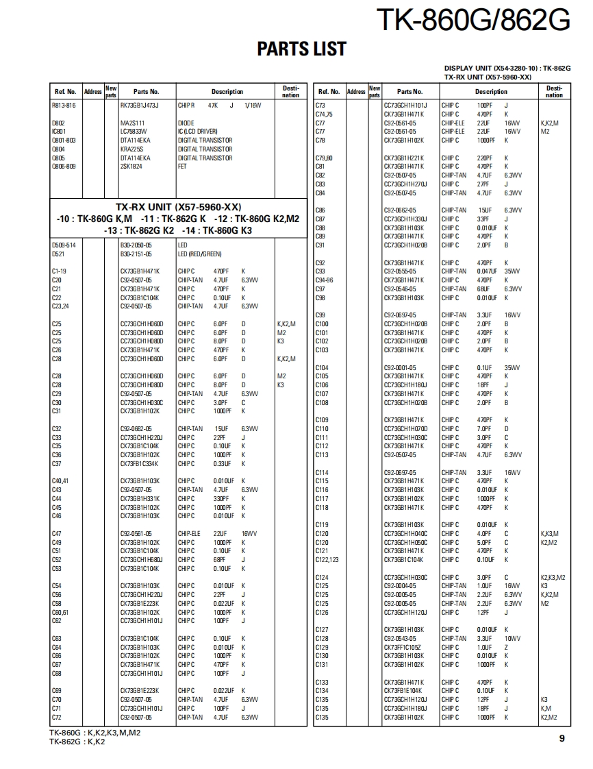 UHF FM TRANSCEIVERTK-860G/862GKENWOODSERVICE MANUALSUPPLEMENT2000-5 PRINTED IN JAPANB51-8529-00(N)1268This service manual mainly covers TK-860G K2,M2 and TK-862G K2If information you require is missing from this service manual.Please refer to the B51-8498-10 service manual.TK-860G(K)Microphone(T91-0597-25)Cabinet (Upper)(A01-2165-13)Panel assy(A62-0642-03)KENWOODPATCHMONSCNKey topTK-862G(K)(K29-5343-02)Microphone(T91-0597-25)Cabinet(Upper)(A01-2165-13)Panel assy」(A62-0731-03KENWOODMONKey top(K295344-02)