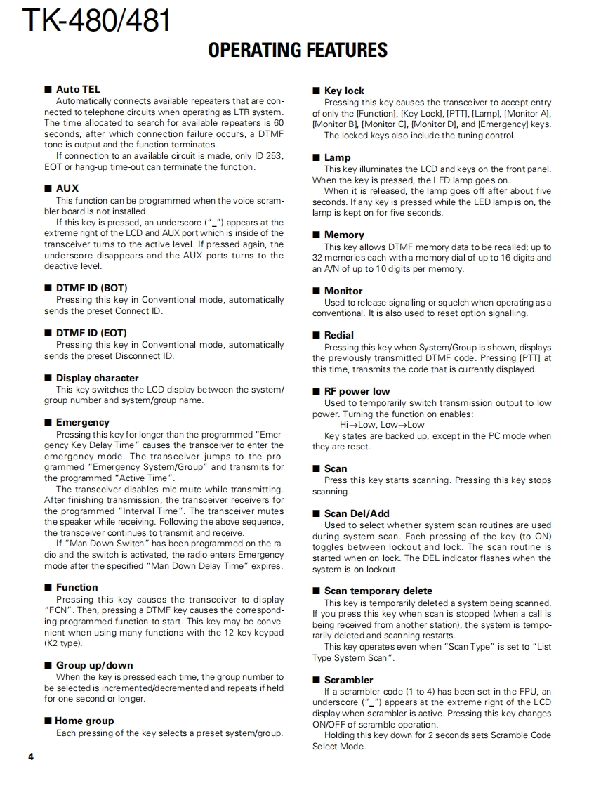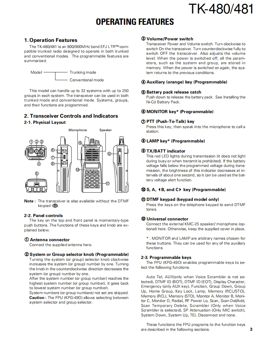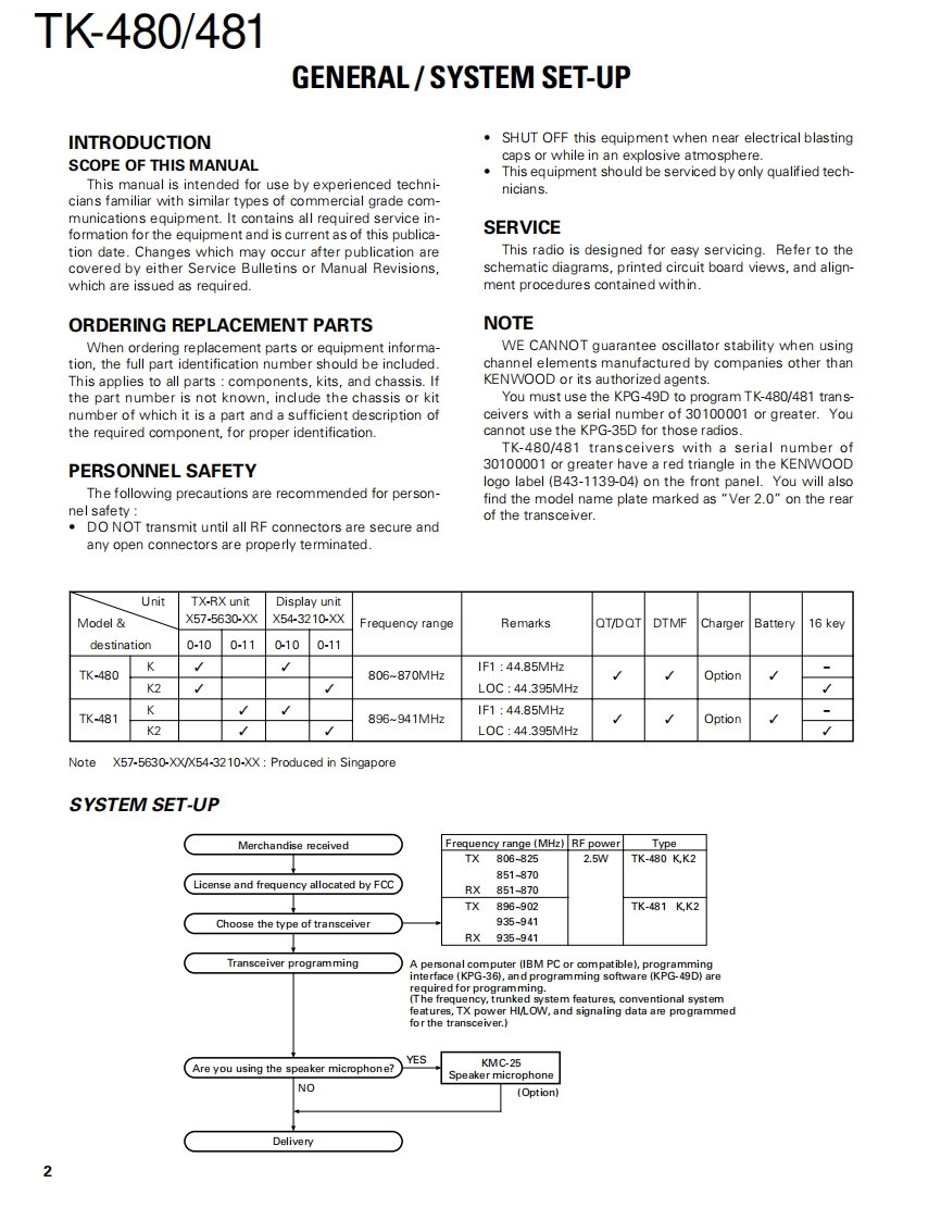 800MHz/900MHz FM TRANSCEIVERKENWOODTK480/481SERVICE MANUALREVISED II2001-3 PRINTED IN JAPANB51-8408-20(N1015This service manual applies to products with 30100001 orsubsequent serial numbers.Whip antenna(T90-0636-25):TK-480(T90-0640-25):TK.481Knob (ENC)CONTENTS(K29-5232-03)Knob (VOL)SYSTEM SET-UP.....2(K29-5231-03)OPERATING FEATURES............3REALIGNMENT…11CIRCUIT DESCRIPTION...14Panel assySEMICONDUCTOR DATA........20(A62-0981-04)DESCRIPTION OF COMPONENTS23BadgePARTS LIST...24(B43.1139-04)EXPLODED VIEW.........30PACKING31ADJUSTMENT..........32Knob (PTT)Cabinet assy(K29-5157-03)TERMINAL FUNCTION ......40(A02.3659-03):K2PC BOARD VIEWSDISPLAY UNIT (X54-3210-XX)....................41TX-RX UNIT (X57-5630-XX).....47约00SCHEMATIC DIAGRAM53BLOCK DIAGRAM57LEVEL DIAGRAM (TK-480).59LEVEL DIAGRAM (TK-481)..........60Packing(G53-0841-02):K2KNB-16A/17A (Ni-Cd BATTERY)...................61KPG-36(PROGRAMMING INTERFACE CABLE)..61KSC-19 (CHARGER)....61SPECIFICATIONS.....62CAUTIONPhoto is TK-480/481 K2 type.When using an external power connector,(Produced in Singapore)please use with maximum final module pro-tection of 9V.