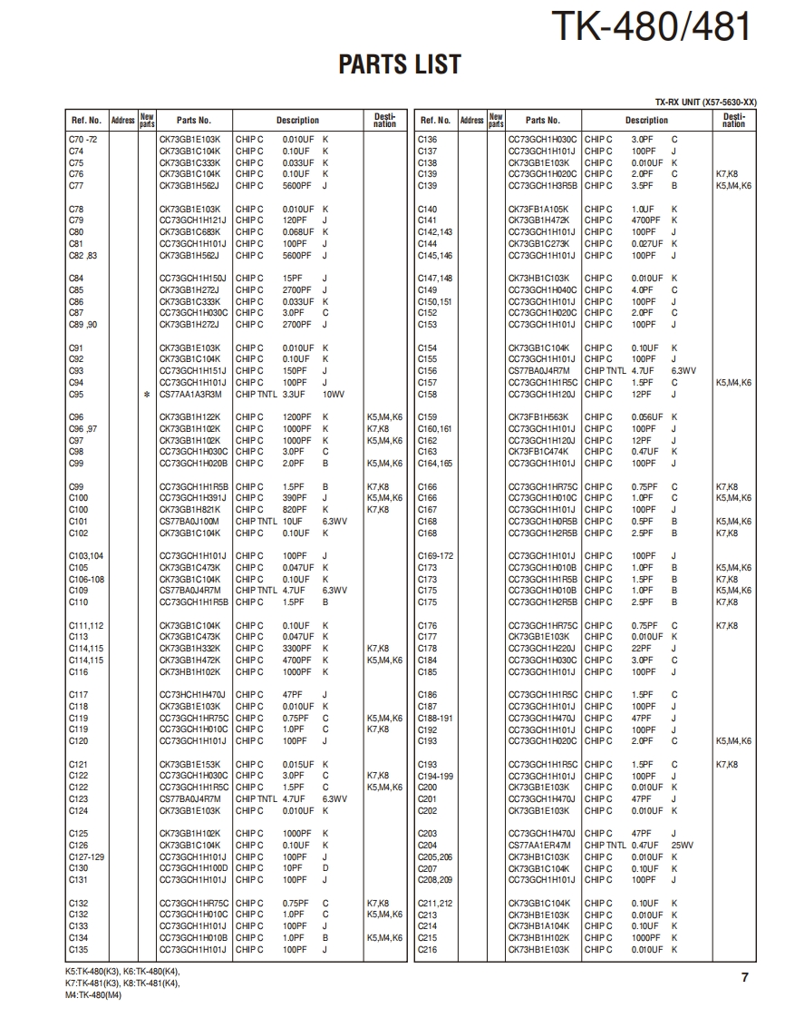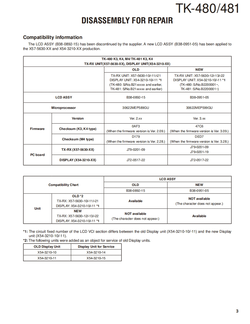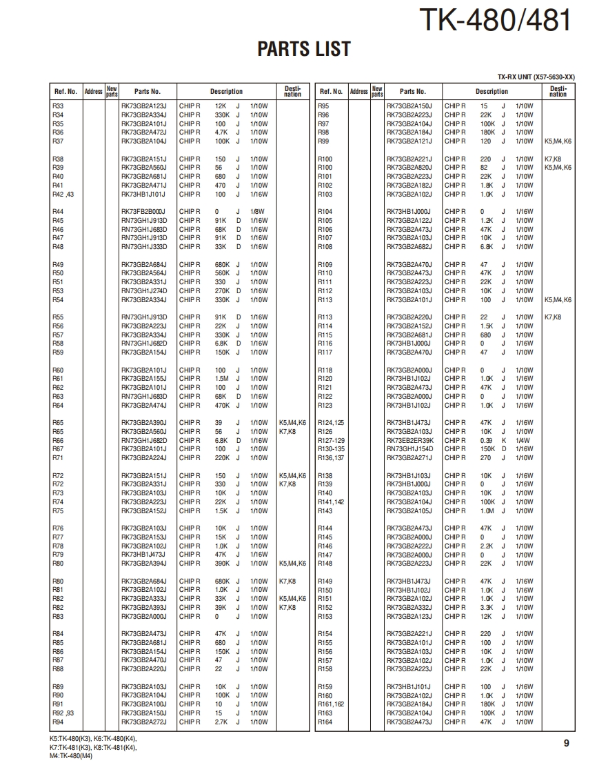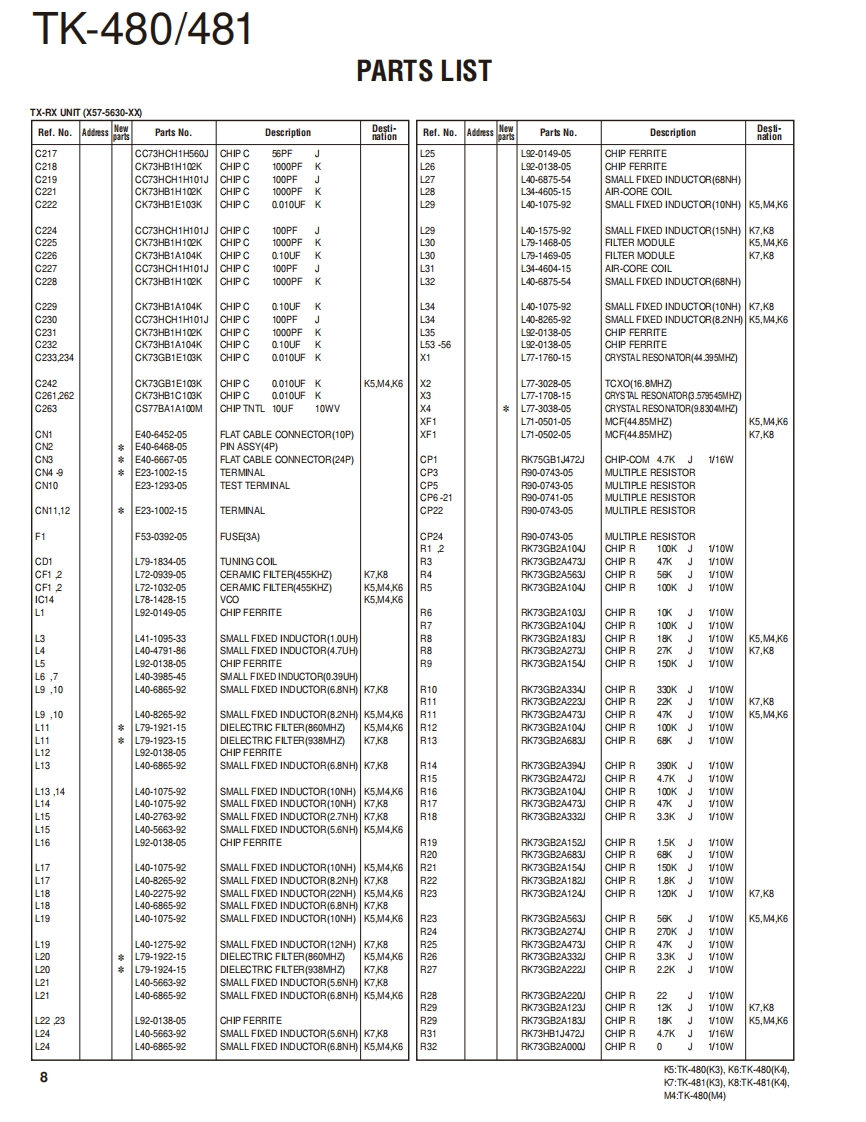 800MHz/900MHz FM TRANSCEIVERTK-480/481KENWOODJVC KENWOOD CorporationSERVICE MANUALSUPPLEMENT II K3,K4,M4 versions2012-4 PRINTED IN JAPANB53-7022-00Y)PDFThis service manual has been revised due to the modification of the LCD ASSY and is-sues it as a supplemental manual.This service manual applies to products with B2200001 (TK-480),B2200001 (TK-481)or subsequent serial numbers.Refer to the TK-480/481 series service manual for anyinformation which has not been covered in this manual.Knob(Selector)(K29-5232-03)Knob (VOL)(K29-5231-03)Whip antenna-(T90-0636-25):TK480(T90-0640-25):TK-481Panel assyBadgeKENWOOD】(A62-0981-04)(B43-1139-04)CONTENTSKnob (PTT)(K29-5157-03)GENERAL.…2DISASSEMBLY FOR REPAIR..........3PARTS LIST.........040A0间0CEXPLODED VIEW.............11Packing(G53-084122:K4PC BOARDTX-RX UNIT(X57-5630-XX)..12SCHEMATIC DIAGRAM......................16Cabinet assy(A02-3659-23):K4CAUTIONIllustration is TK-480/481 K4 type.When using an external power connector,please use with maximum final module protec-tion of 9V.