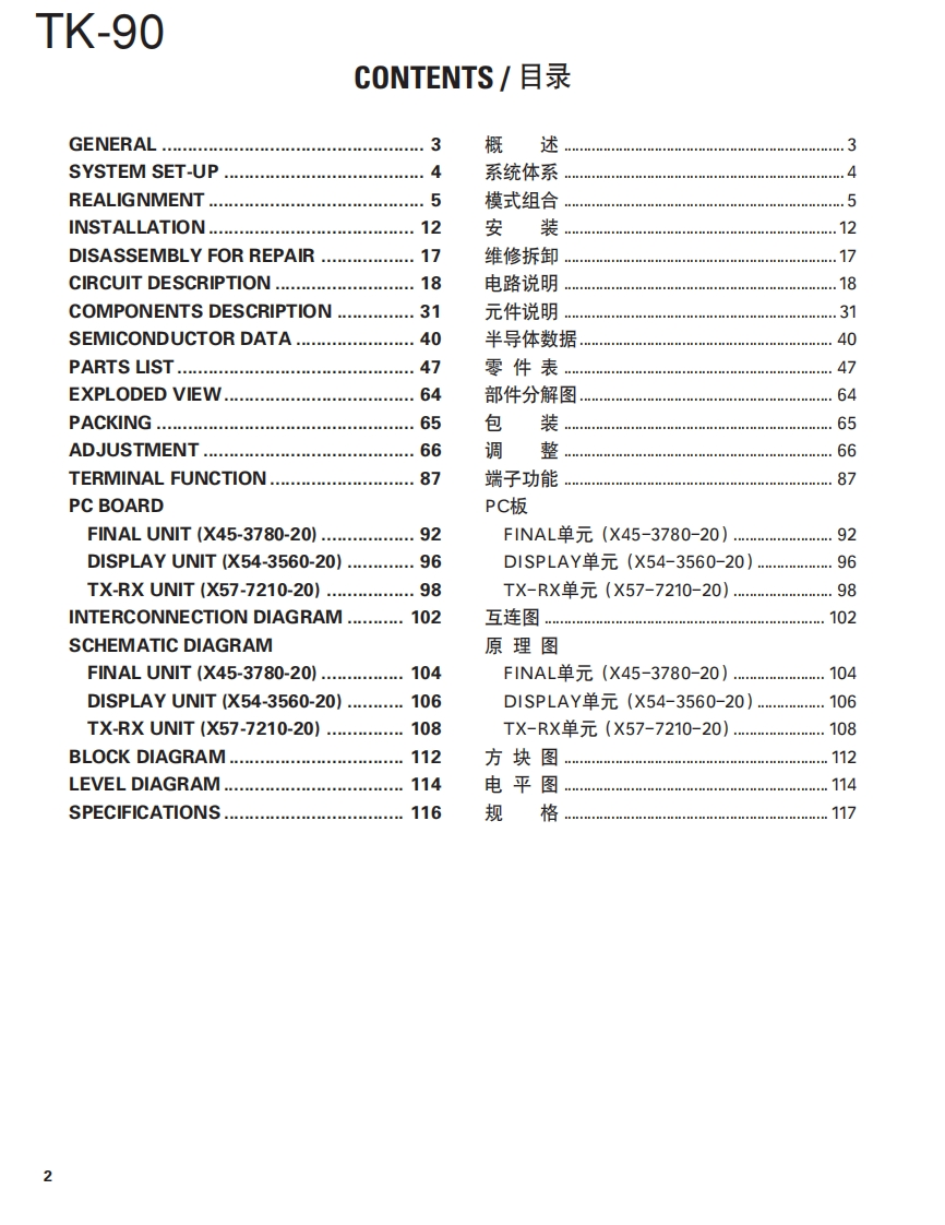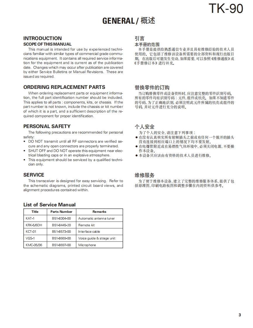 HF TRANSCEIVER/短波对讲机TK-90KENWOODKenwood CorporationSERVICE MANUAL/维修手册2006-4 PRINTED IN JAPANB51-8757-00(N)781vo必ALE☑XOP日◇MLHF RADIOTELEPHONEKENWOODModular jackCover (Dust filter)Key topPanel assyBadge(E58-0522-05)(F07-1905-01)(K29-9362.02)(A62.1125-03)(B43.1186-04)Lead wire with connector (AT)Shielding plateE37-1228-05)F15-1013-04)ATEXT.SPX)GNDDC 13.6VLead wire withFootCover (FAN)RF coaxialconnector (DC IN)(J02-0441-05)×2(F07.1874-05)X2receptacle (M)(E37-1224-05)(E04-0167-05)无铅焊接通信产品①LF保护环境建伍领先△注意:本产品是无铅化焊接产品在维修时请使用无铅焊锡和相应的焊接工具详细事项请访问如下网址了解:LFhttp://www.kenwoodhk.com.hk/This product uses Lead Free solder.