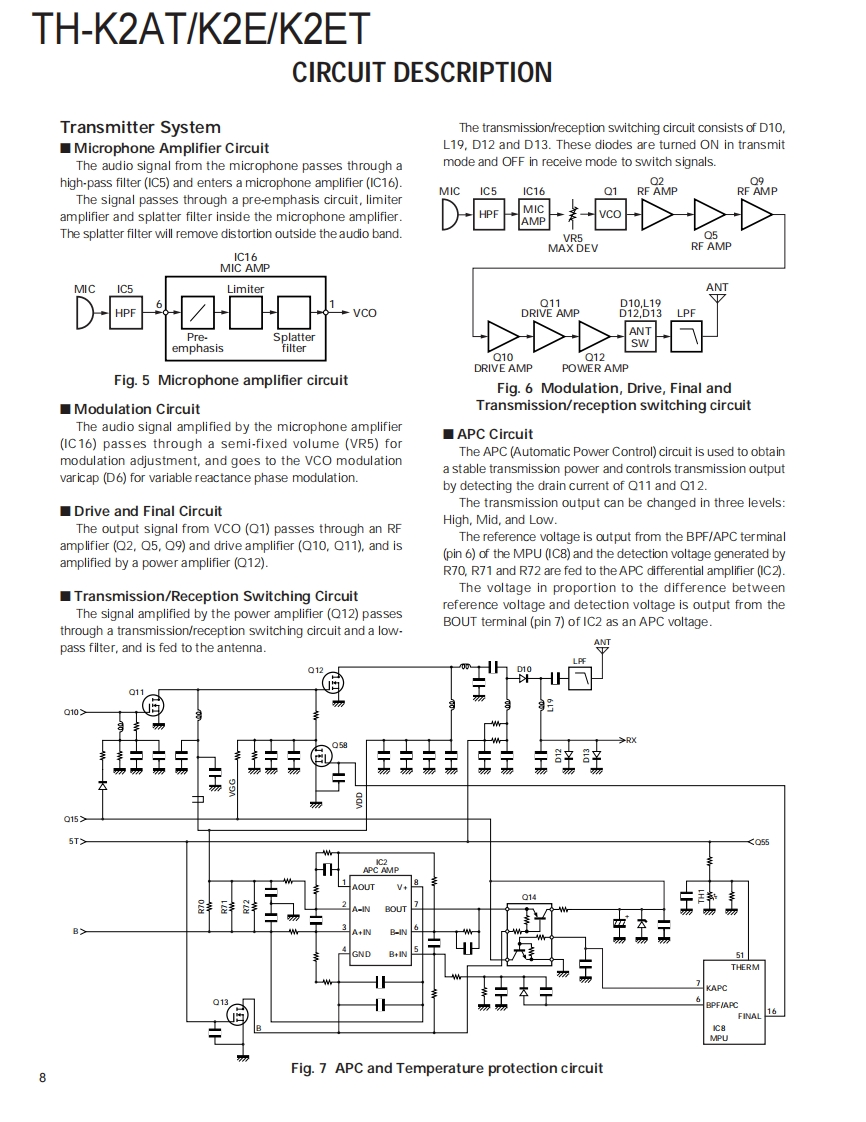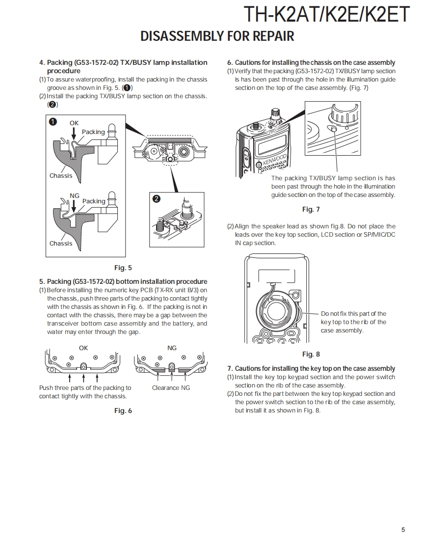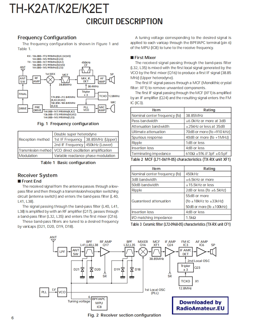 144MHz FM TRANSCEIVERTH-K2AT/K2E/K2ETKENWOODSERVICE MANUAL2003-8 PRINTED IN JAPANB51-8658-00(S)836Helical AntennaHelical Antenna(T90-1018-25(T90-1018-25Knob (ENC)Knob (ENC)(K29-5159-03)(K29-5159-03)Knob (VOL)Knob (VOL)K29-5150-03)(K29-5150-03)Front glassFront glassKnobB10-2746-03)Knob(B10-2746-03)(PTT/LAMP/MON)-(PTT/LAMP/MON)(K29-9274-03)KENWOODCap(K29-9274-03)KENWOODCap(SP/MIC/DC IN)(SP/MIC/DC IN)B09-0675-03)(B09-0675-03)Cabinet assyCabinet assy(16key)(4key)(A02-3819-23)Key top (4key)(A023818-23)23(K29-9276-02)Key top (16key)65B(K29-9272-02TH-K2AT/K2ETTH-K2ECONTENTSDISASSEMBLY FOR REPAIR.2SCHEMATIC DIAGRAM..........50CIRCUIT DESCRIPTION .........6LEVEL DIAGRAM.55SEMICONDUCTOR DATA....................14BLOCK DIAGRAM.56COMPONENTS DESCRIPTION.........15BC-21 (WALL CHARGER)...........58PARTS LIST17PB-43N (Ni-MH BATTERY PACK)..............58EXPLODED VIEW..23BT-14 (BATTERY CASE)....................59PACKING.25PG-4Y (PROGRAMMING INTERFACE CABLE)....59ADJUSTMENT.....27MCP-1A(MEMORY CONTROL PROGRAM).........59TERMINAL FUNCTION......43SPECIFICATIONS.......BACK COVERPC BOARDTX-RX UNIT (X57-674X-XX)(A/3).................4.4Downloaded byTX-RX UNIT (X57-674X-XX)(B/3),(C/3)..........48RadioAmateur.EU