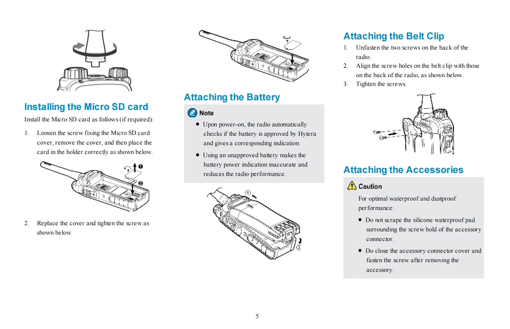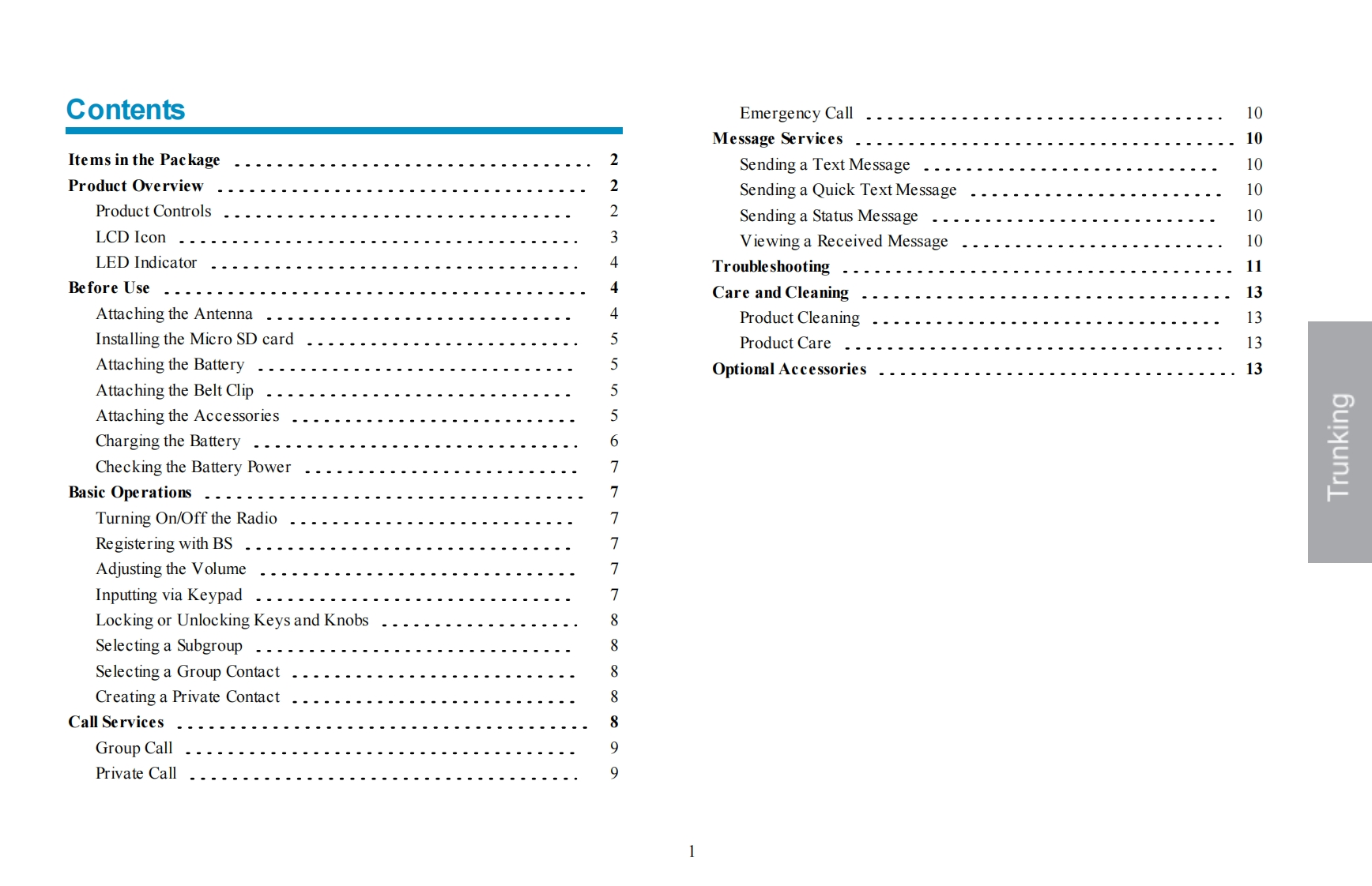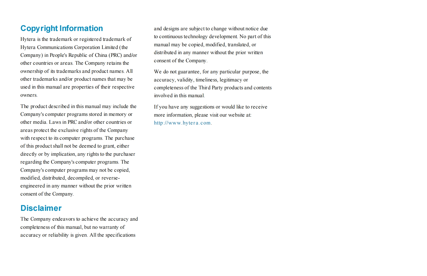PrefaceWelcome to the world of Hytera and thank you for purchasing this product.This manual includes a description of the functionsand step-by-step procedures for use.It also includes a troubleshooting guide.Please refer to the corresponding Feature Bookfor detailed features and operations.HyteraTo avoid bodily injury or property loss caused by incorrect operation,please read carefully the Safety Information Bookletbefore useThis manual is applicable to the following product:PD982i Digital Trunking Portable Radio