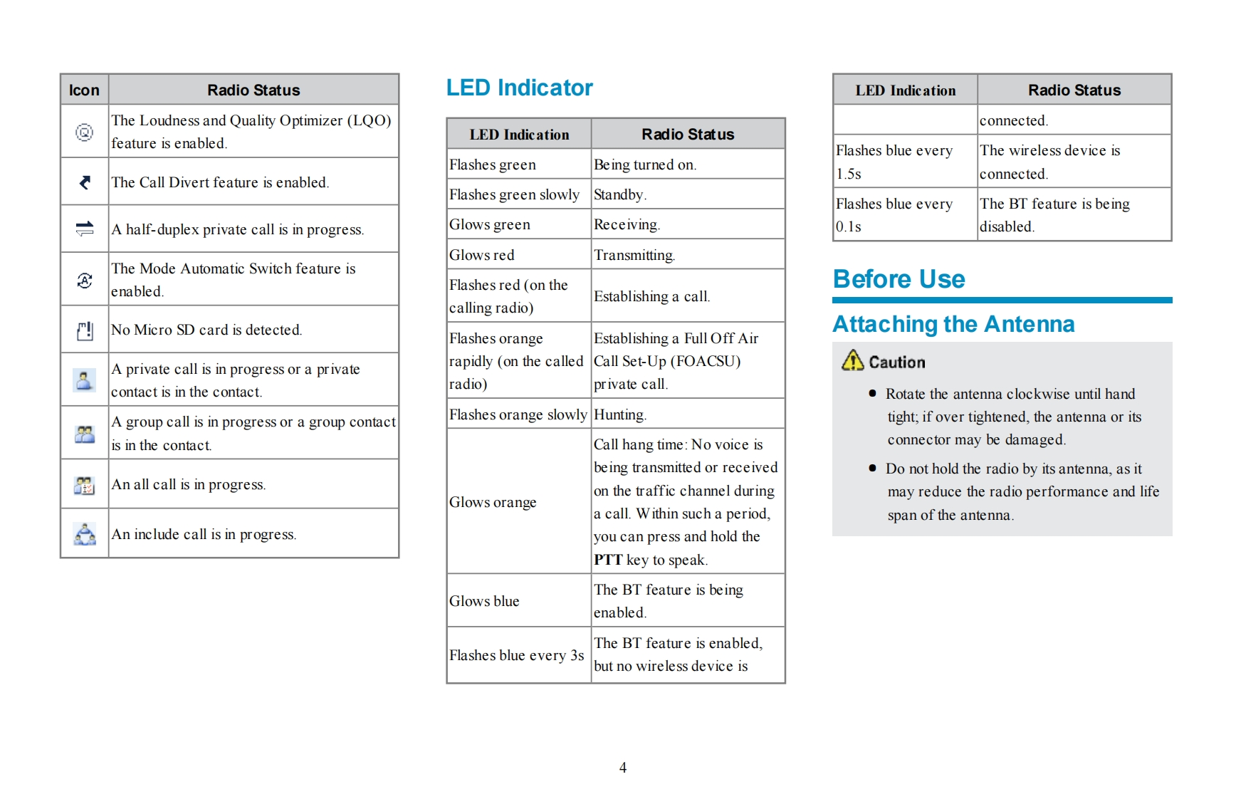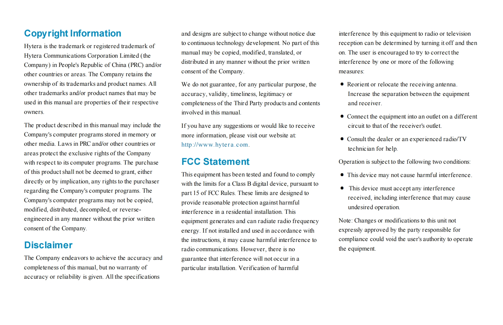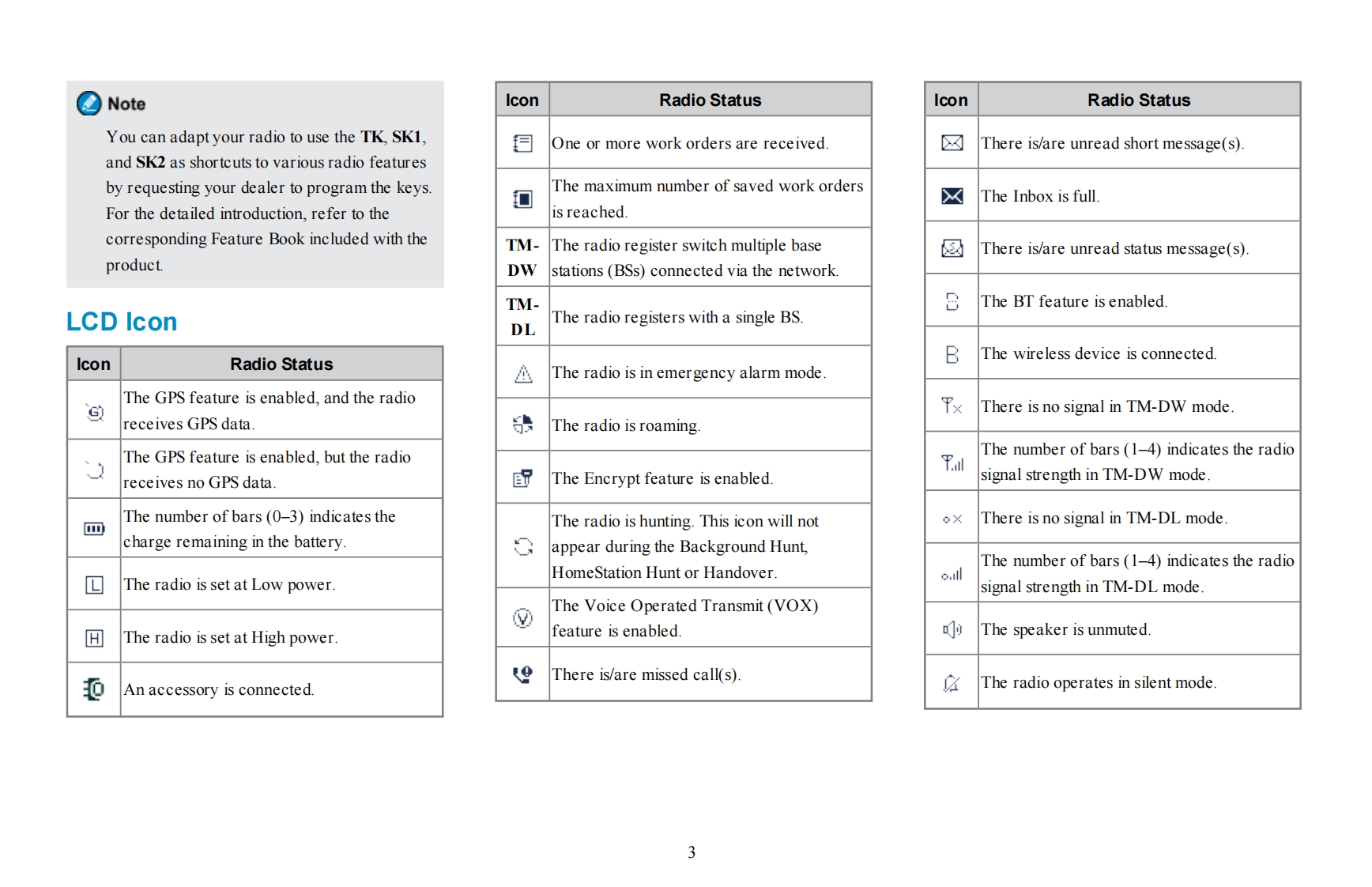 PrefaceWelcome to the world of Hytera and thank you for purchasing this product.This manual includes a description of the functionsand step-by-step procedures for use.It also includes a troubleshooting guide.Please refer to the corresponding Feature Bookfor detailed features and operations.HyteraTo avoid bodily injury or property loss caused by incorrect operation,please read carefully the Safety Information Bookletbefore useThis manual is applicable to the following product:PD982i Digital Trunking Portable Radio