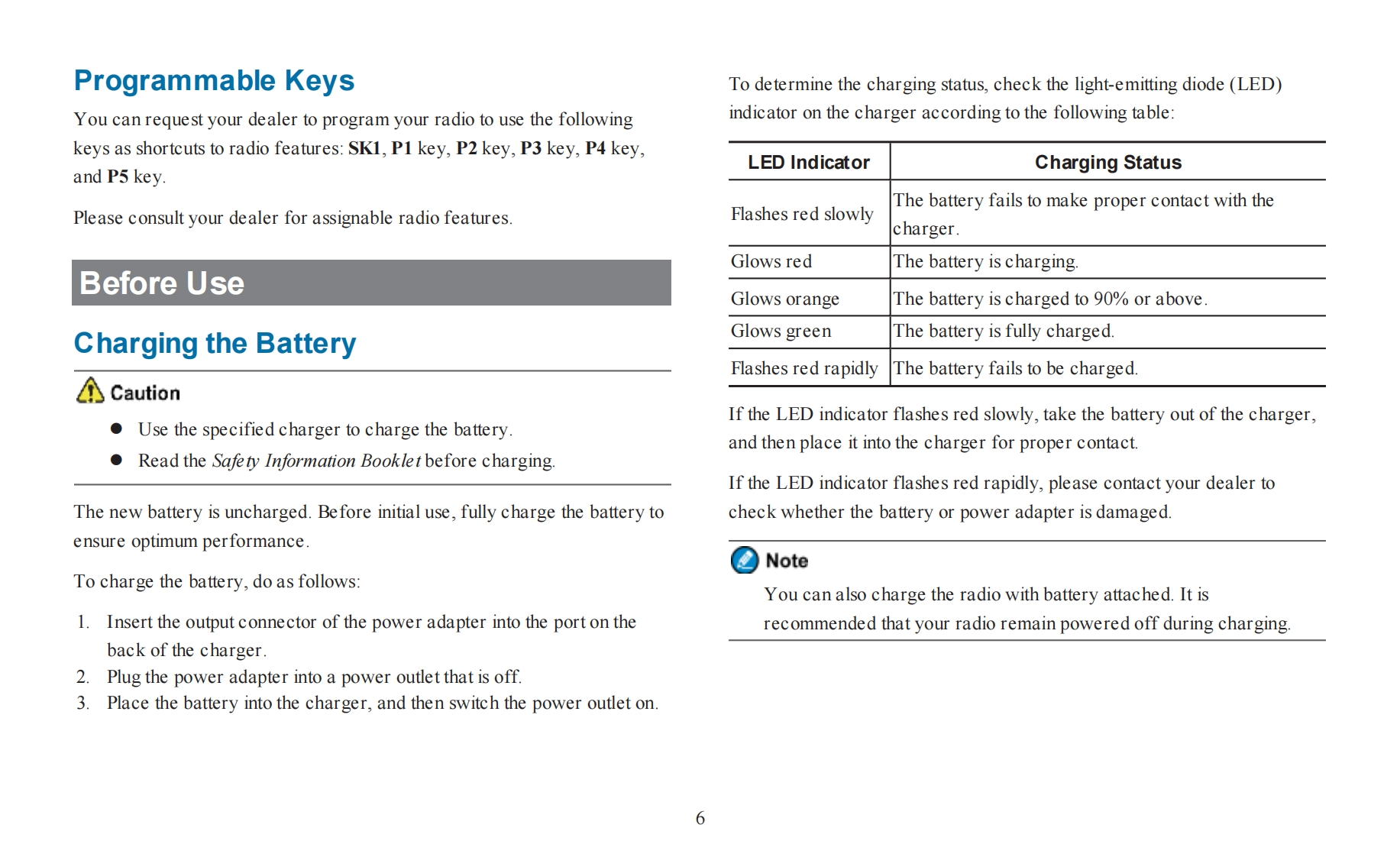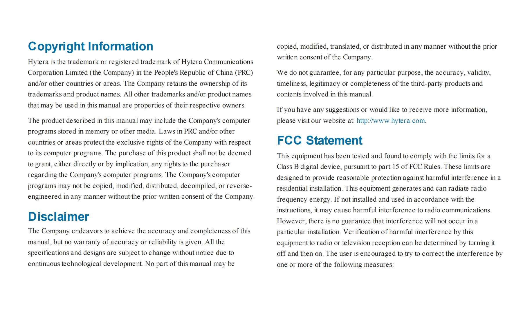 Welcome to the world of Hytera and thank you for purchasing this product.This manualincludes a description of the functions and step-by-step procedures for use.It also includesa troubleshooting guide.To avoid bodily injury or property loss caused by incorrectoperation,please carefully read the Safety Information Booklet before use.This manual is applicable to the following product:PD562i Digital Portable Radio