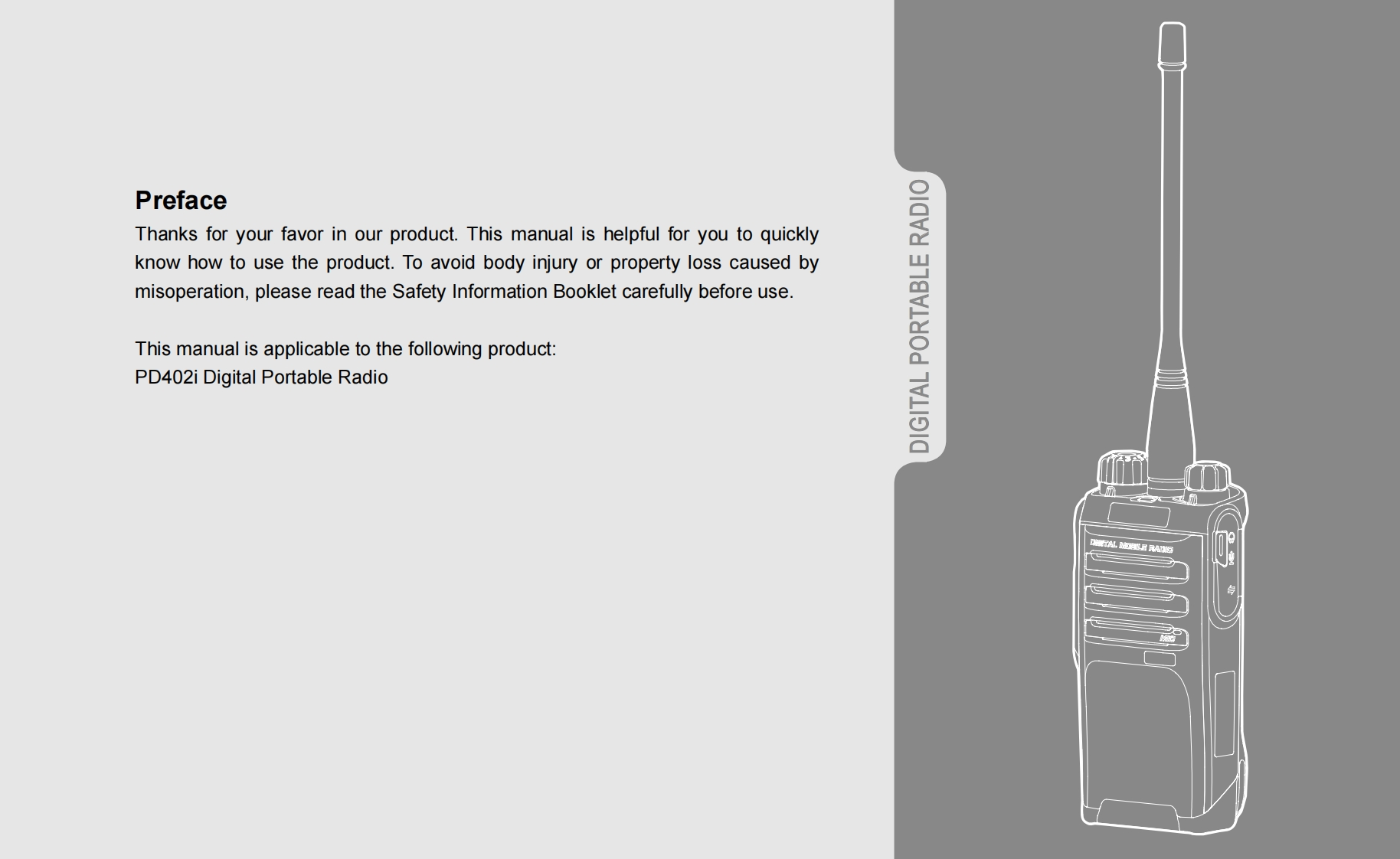 Hytera-PD402i-Digital-Portable-Radio-使用说明书手册找手册网30天前发布关注私信3.91MB20页043Hytera-PD402i-Digital-Portable-Radio-使用说明书手册此内容为付费资源,请付费后查看¥19¥21黄金会员免费钻石会员免费登录购买付费资源 第1页 / 共20页 第2页 / 共20页 第3页 / 共20页 第4页 / 共20页 第5页 / 共20页 第6页 / 共20页 第7页 / 共20页 第8页 / 共20页 第9页 / 共20页 第10页 / 共20页 试读已结束,还剩10页,您可下载完整版后进行离线阅读 THE END海能达 文本预览 HyteraDIGITAL PORTABLE RADIOOWNER'S MANUAL 查看更多 收起部分 喜欢就支持一下吧收藏