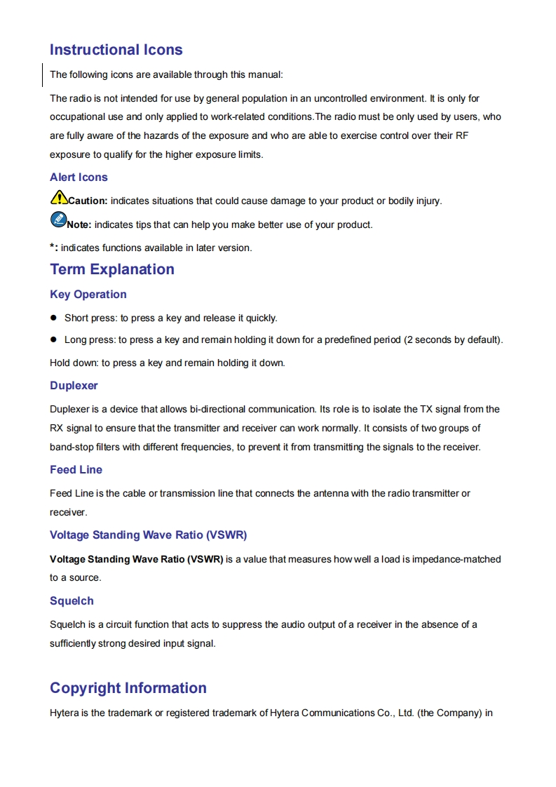 PrefaceThanks for your favor in our product.To derive optimum performance from the product,please read thismanual and the supplied Safety Infommation Booklet carefully before use.This manual is applicable to the following model:RD96X (X may represent 2,5,6 or 8)
