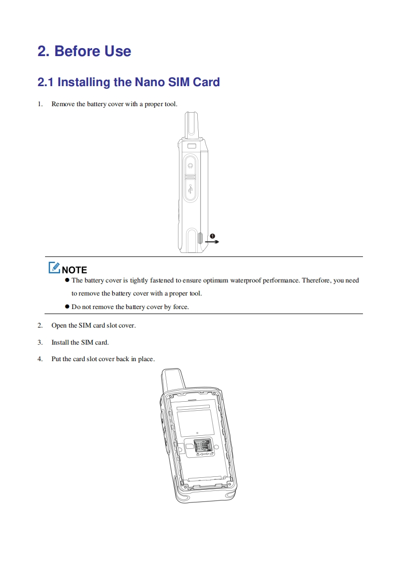 Hytera_PNC360S_PoC_Radio_简明操作说明书手册_V1.0找手册网30天前发布关注私信0.61MB8页043Hytera_PNC360S_PoC_Radio_简明操作说明书手册_V1.0此内容为付费资源,请付费后查看¥19¥21黄金会员免费钻石会员免费登录购买付费资源 第1页 / 共8页 第2页 / 共8页 第3页 / 共8页 第4页 / 共8页 第5页 / 共8页 第6页 / 共8页 第7页 / 共8页 第8页 / 共8页 已完成全部阅读,共8页 THE END海能达 文本预览 Hytera1.PNC360S Product OverviewEmergency KeyLEDStrap HoleIndicatorMicrophonePTT Key-LCDAudio JackDisplayUSB Type-C.VolumeOK/MenuPortBatteryCoverKeysKeyBack KeyAnswer KeyPowerNavigation-On/Off KeyKeySpeaker 查看更多 收起部分 喜欢就支持一下吧收藏
