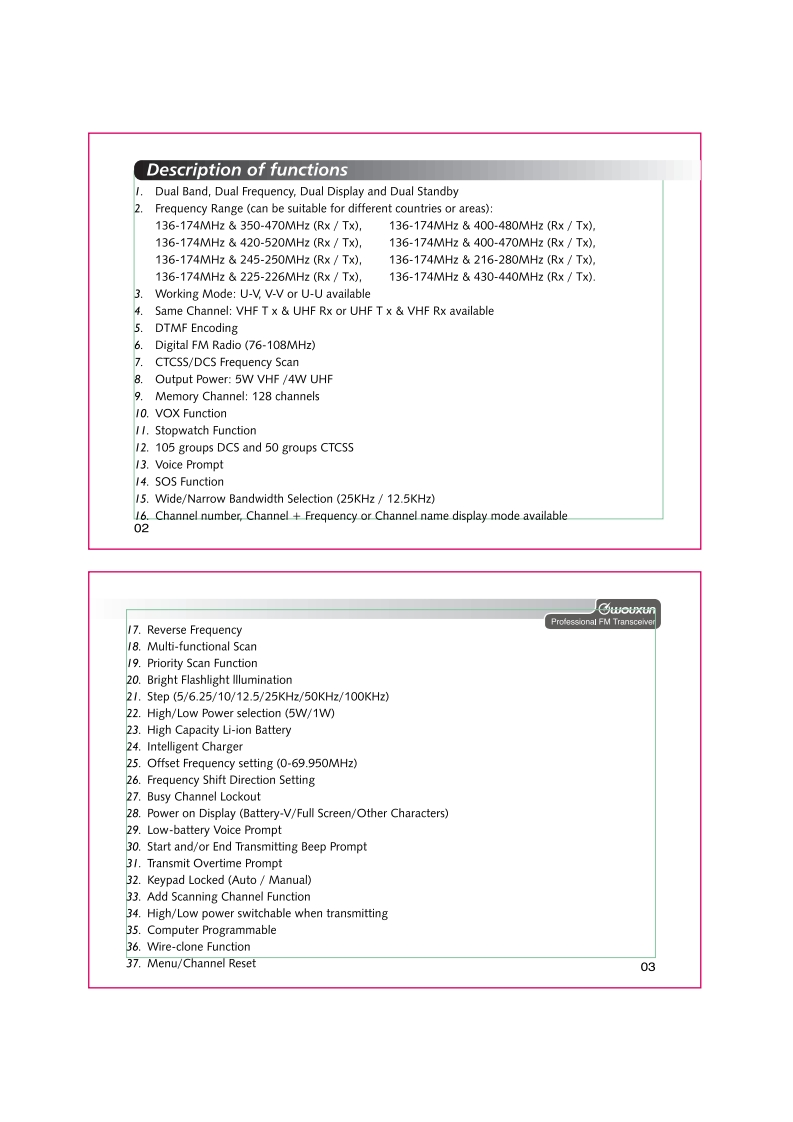 Thanks for buying the wouxun transceiver.This transceiver offers latest design,multi-functionality,stableperformance and easy operation.We believe you will bepleased with the high quality and dependable features for allyour communication needs.Downloaded byRadioAmateur.EU