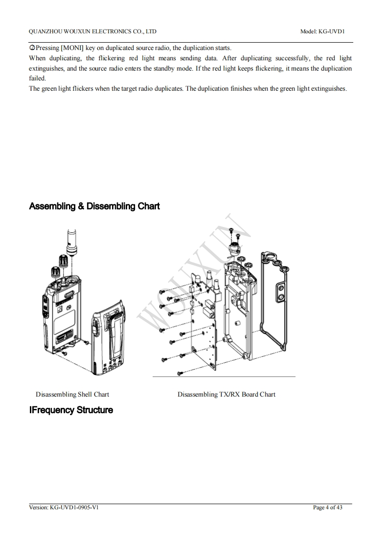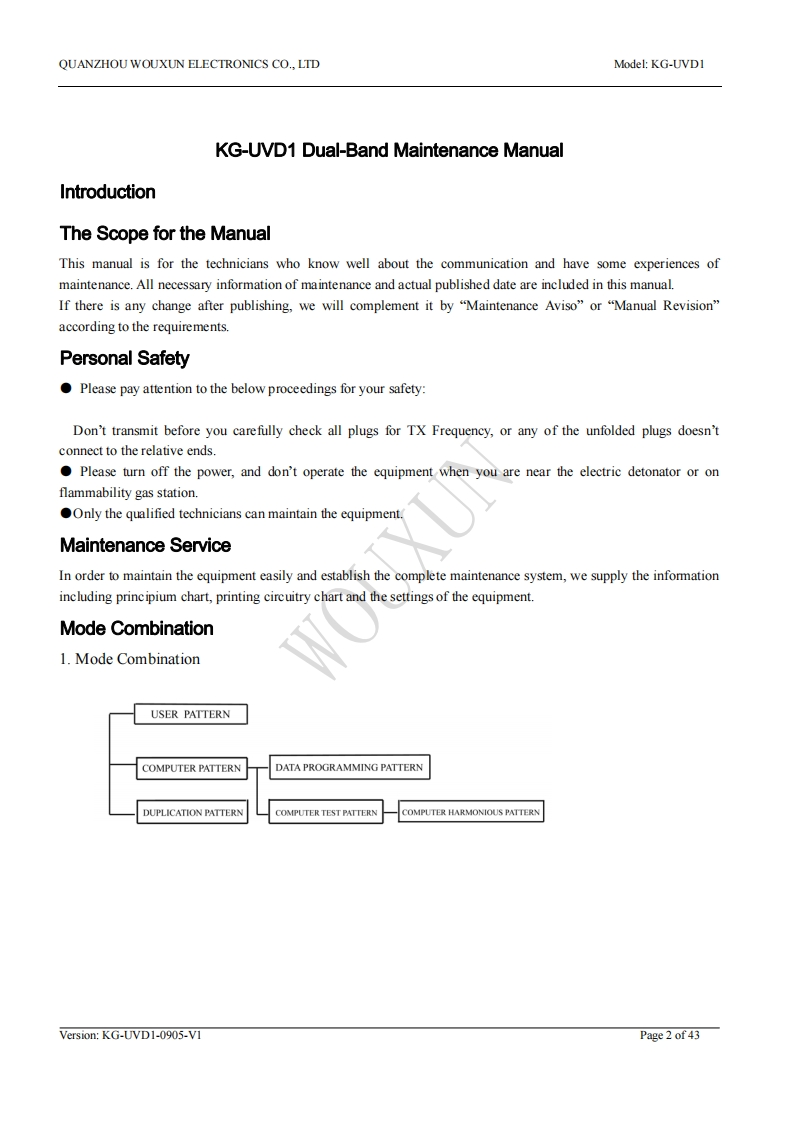 UVD1PService操作说明书手册找手册网22小时前发布关注私信3.86MB43页029UVD1PService操作说明书手册此内容为付费资源,请付费后查看¥19¥21黄金会员免费钻石会员免费立即购买您当前未登录!建议登陆后购买,可保存购买订单付费资源 第1页 / 共43页 第2页 / 共43页 第3页 / 共43页 第4页 / 共43页 第5页 / 共43页 第6页 / 共43页 第7页 / 共43页 第8页 / 共43页 第9页 / 共43页 第10页 / 共43页 试读已结束,还剩33页,您可下载完整版后进行离线阅读 THE END欧讯 文本预览 QUANZHOU WOUXUN ELECTRONICS CO.,LTDModel:KG-UVDIService Manual:4Model:KG-UVD1Version:KG-UVD1-0905-V1QUANZHOU WOUXUN ELECTRONICS CO.,LTDVersion:KG-UVD1-0905-V1Page 1 of 43 查看更多 收起部分 喜欢就支持一下吧收藏