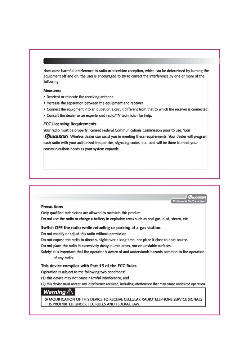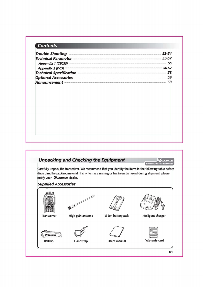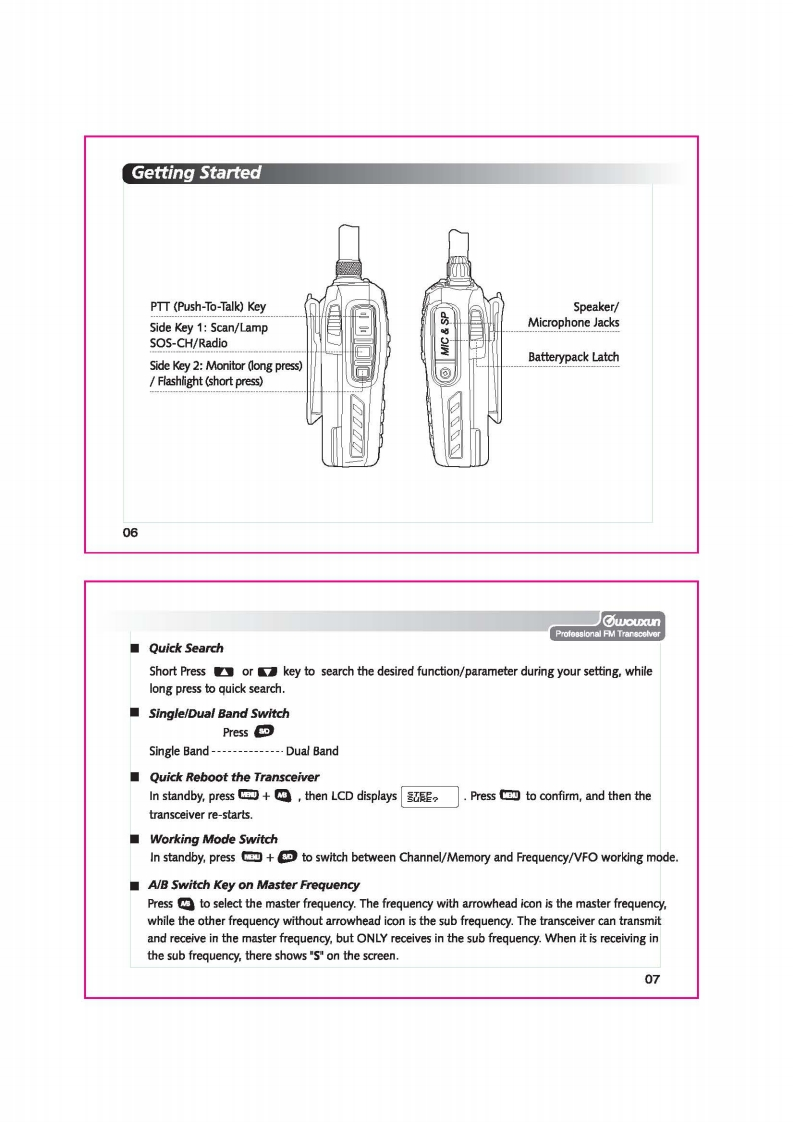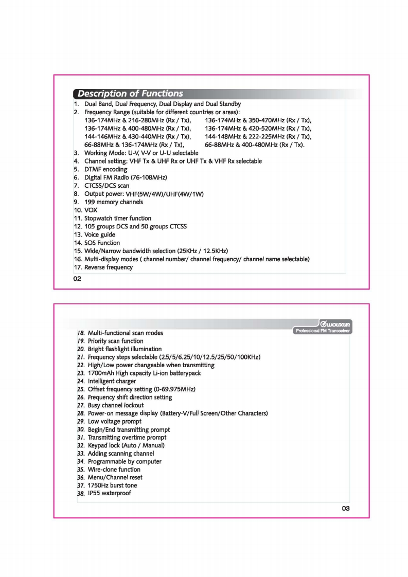 Thanks for buying the wouxun transceiver.This transceiver offers latest design,enhanced features,solidperformances and easy accessibility.We believe you will be pleasedwith the high quality and reliable features for all your communicationneeds.READ THIS IMPORTANT INFORMATION ON THE SAFE AND EFFICIENT OPERATION BEFORE USINGwouxun PORTABLE TRANSCEIVER.This manual is ONLY suitable for KG-UV6D.