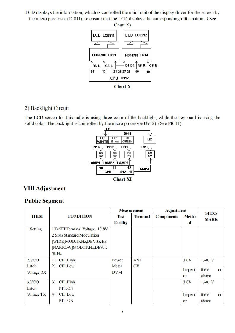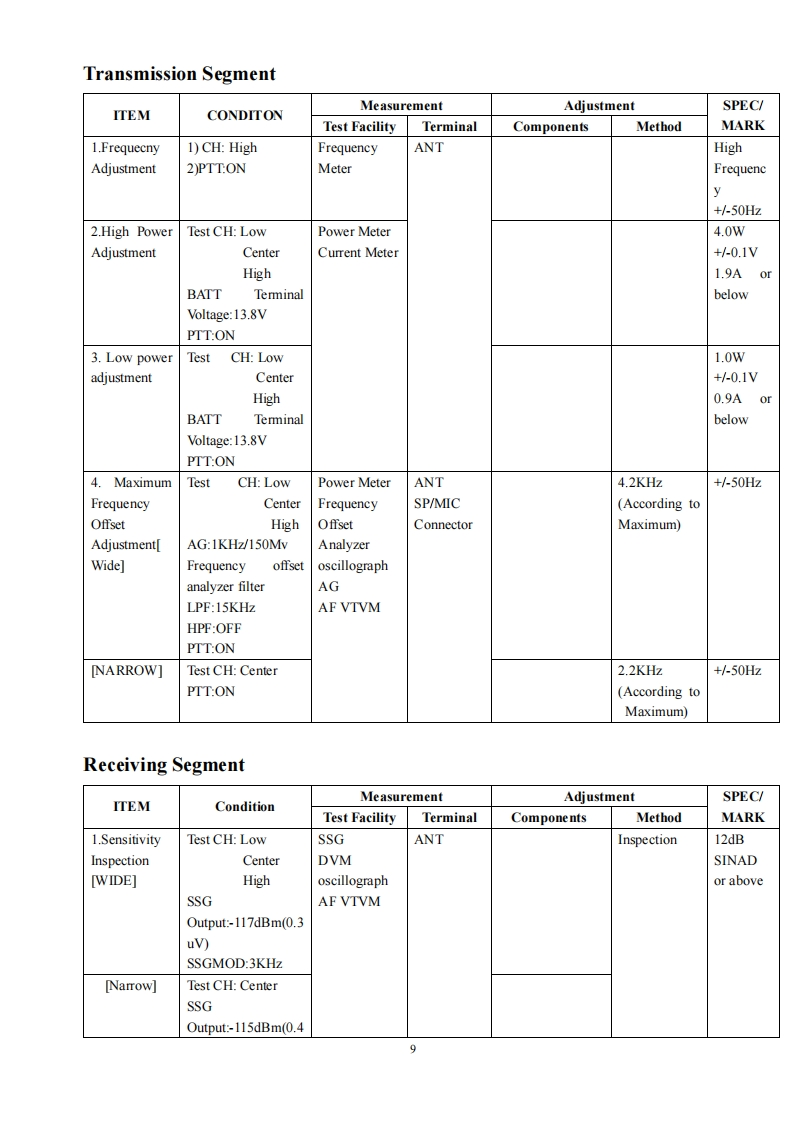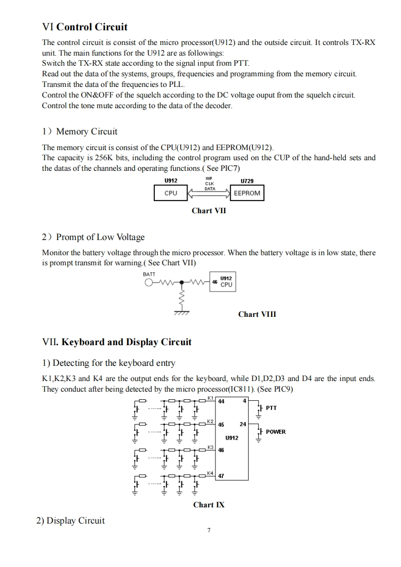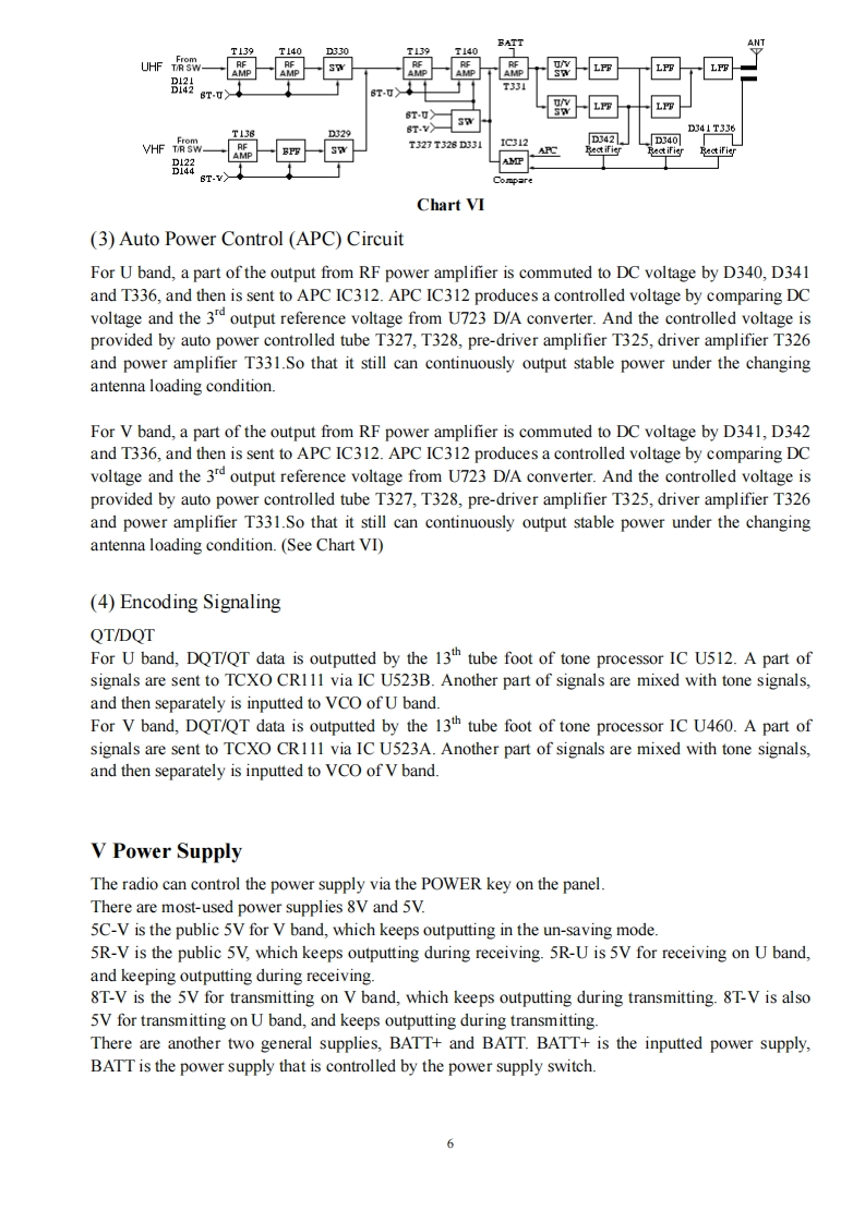 Twin Band Mobile Radio Service Manual简觉问回回尚尚是日印I Structure of FrequencyThis model uses twice frequency conversion.For UHF band,the 1st IF is 38.85MHz,and the 2nd IF is455KHz;For VHF band,the 1 IF is 29.95MHz,and the 2IF is 450KHZ.The 1st local oscillations isprovided by PLL circuit.PLL circuit is also produced the necessary transmitting frequencies(see ChartI).A,B,C,D frequency points of Chart I are as followings:ANTSP11st MIX38.85HHzMCF@38.395MHzANTRESWMIX IFAMPDETAudioAMPPLLrocessorFINALRIVESWPRESP2DRIVEU512TCXOIst MIX29.25MHzMCF☑cFU460ANTMICSWAMPAudioMIcProcessorAMPPLLPREDRIVECOTCXO14.4MHzTriplerAX2Chart IStructure ofBDFrequency(1)136174.995MHz165.250-204.245MHz400470.995MHz429.25-500.245MHz(2)136-174.995MHz165.250-204.245MHz450-520.995MHz479.25-550.245MHz(3)136-174.995MHz165.250-204.245MHz245-245.995MHz274.25-275.245MHz