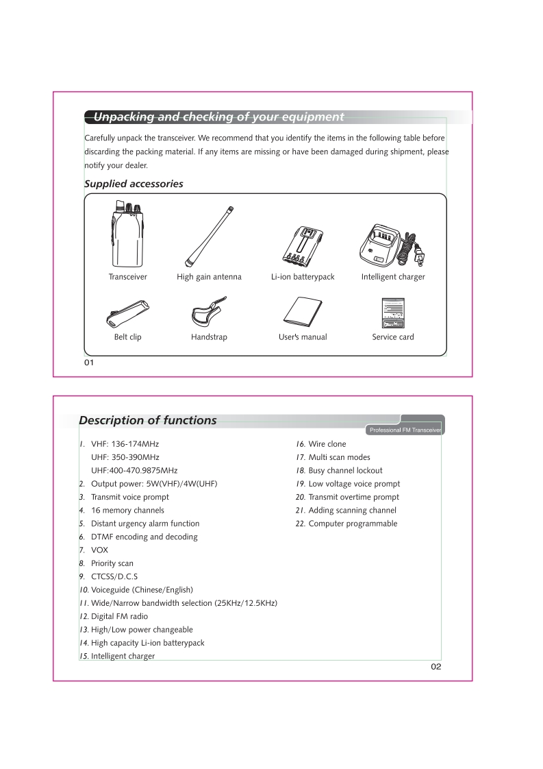 Thanks for buying the series transceiver.This transceiver offers novel design,enhanced features,solidperformances and easy accessibility.We believe you will bepleased with the high quality and dependable features for allyour communication needs.