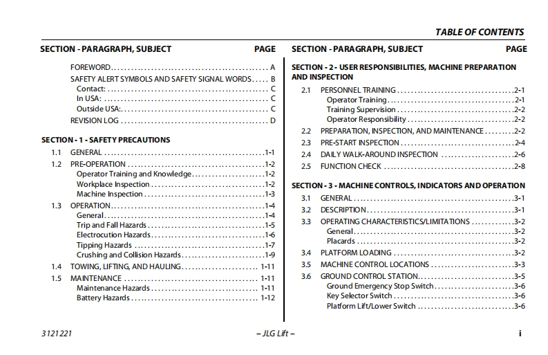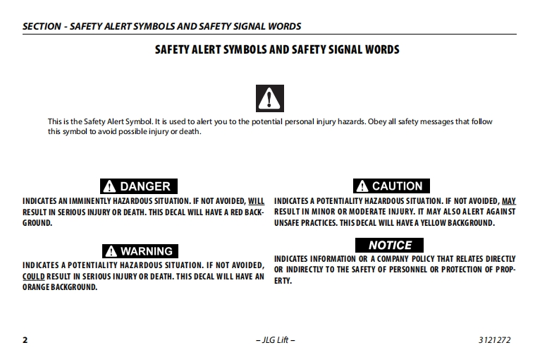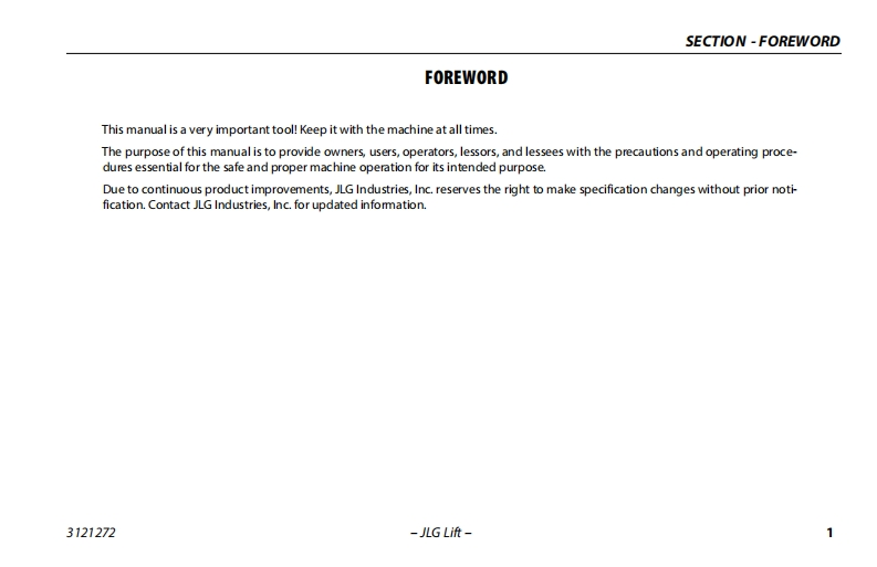 JLG1932R-JLG-高空作业平台升降机车操作与维修维护说明书手册-and-Safety-Manual找手册网3天前发布关注私信5.86MB98页036JLG1932R-JLG-高空作业平台升降机车操作与维修维护说明书手册-and-Safety-Manual此内容为付费资源,请付费后查看¥19¥21黄金会员免费钻石会员免费立即购买您当前未登录!建议登陆后购买,可保存购买订单付费资源 第1页 / 共98页 第2页 / 共98页 第3页 / 共98页 第4页 / 共98页 第5页 / 共98页 第6页 / 共98页 第7页 / 共98页 第8页 / 共98页 第9页 / 共98页 第10页 / 共98页 试读已结束,还剩88页,您可下载完整版后进行离线阅读 THE ENDJLG/CROWN 文本预览 GAn Oshkosh Corporation CompamOperation and Safety ManualOriginal Instructions-Keep this manual with the machine at all times.Model(s)1932RS/6RS3248RS/10RS(∈ANSI3121272June 29,2018-Rev F 查看更多 收起部分 喜欢就支持一下吧收藏