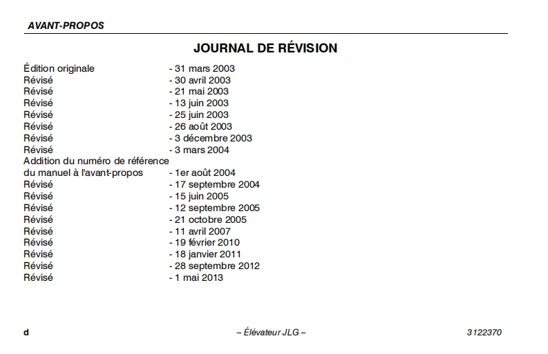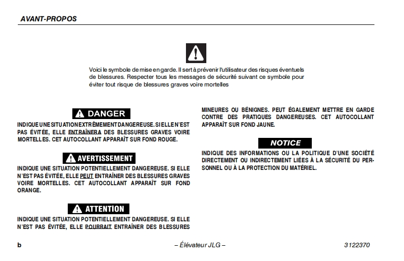 JLG-1930ES-3246ES操作与日常维护说明书手册找手册网3天前发布关注私信3.64MB126页050JLG-1930ES-3246ES操作与日常维护说明书手册此内容为付费资源,请付费后查看¥19¥21黄金会员免费钻石会员免费立即购买您当前未登录!建议登陆后购买,可保存购买订单付费资源 第1页 / 共126页 第2页 / 共126页 第3页 / 共126页 第4页 / 共126页 第5页 / 共126页 第6页 / 共126页 第7页 / 共126页 第8页 / 共126页 第9页 / 共126页 第10页 / 共126页 试读已结束,还剩116页,您可下载完整版后进行离线阅读 THE ENDJLG/CROWN 文本预览 GAn Oshkosh Corporation CompanyManuel d'utilisation et de securiteInstructions d'origine-Conserver ce manuel en permanence dans la machine.Modèles1930ES/2030ES/2630ES/2646ES/3246ES3122370ANSI C∈@May1,2013French-Operators Safety 查看更多 收起部分 喜欢就支持一下吧收藏