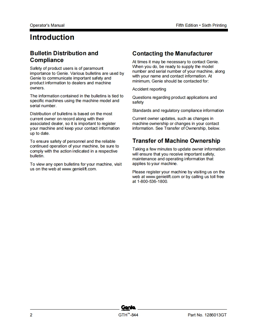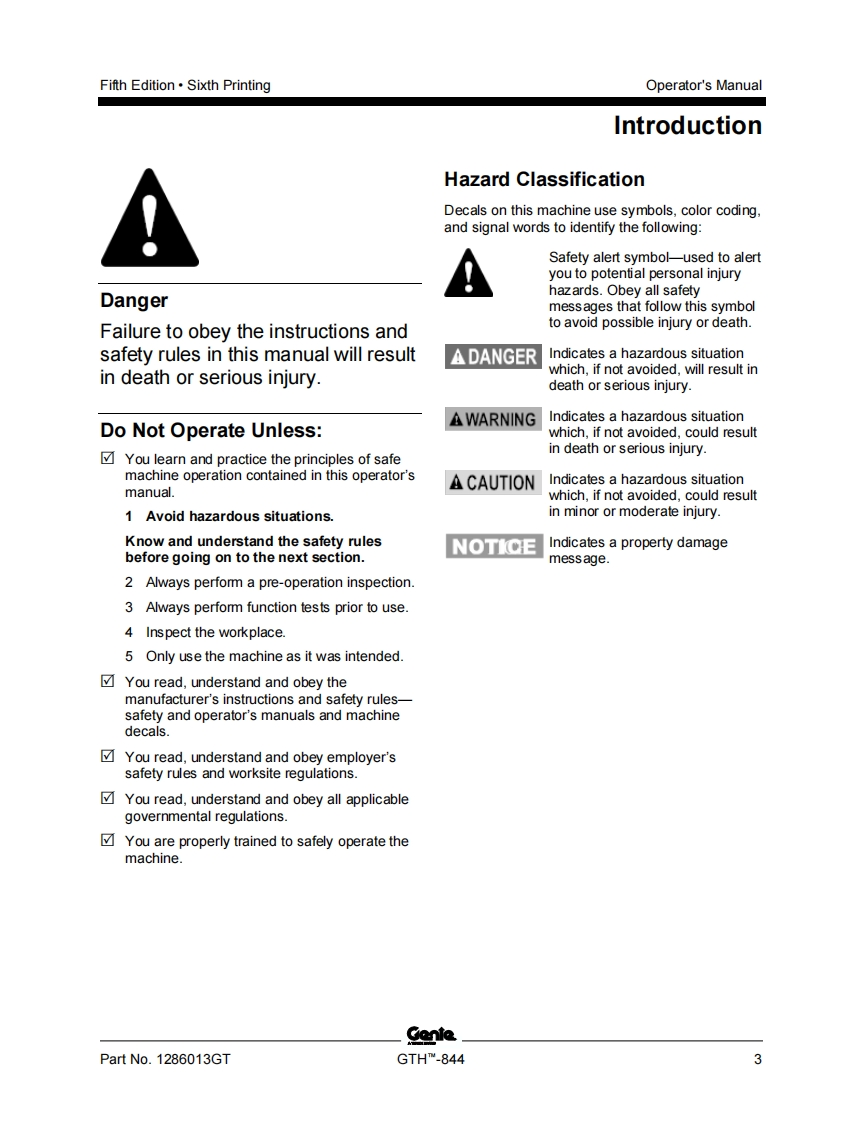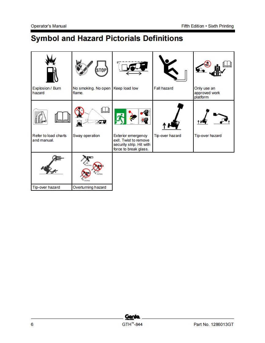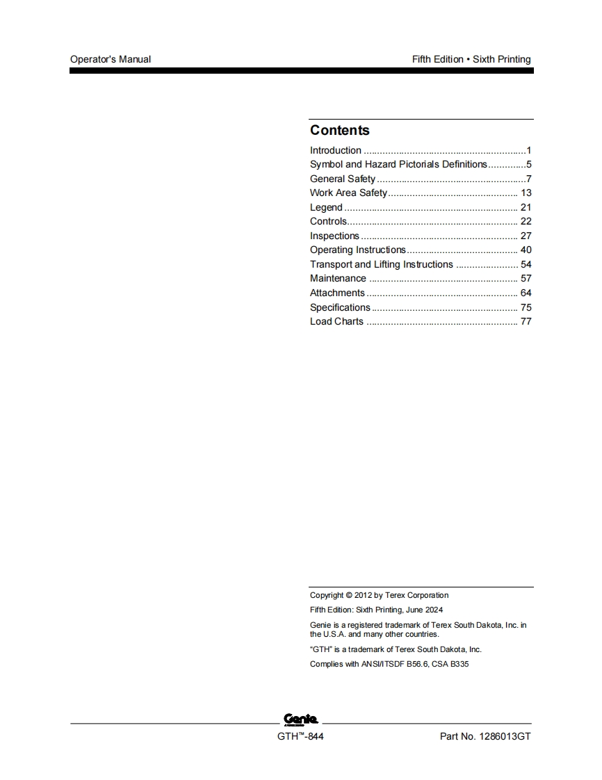 GENIE_844D-1286013操作与维护手册找手册网22小时前发布关注私信6.66MB85页030GENIE_844D-1286013操作与维护手册此内容为付费资源,请付费后查看¥19¥21黄金会员免费钻石会员免费立即购买您当前未登录!建议登陆后购买,可保存购买订单付费资源 第1页 / 共85页 第2页 / 共85页 第3页 / 共85页 第4页 / 共85页 第5页 / 共85页 第6页 / 共85页 第7页 / 共85页 第8页 / 共85页 第9页 / 共85页 第10页 / 共85页 试读已结束,还剩75页,您可下载完整版后进行离线阅读 THE ENDGENIE 文本预览 GenieA TEREX BRANDOperator's ManualSerial Number RangeGTHTM-844from GTH8E-11500withMaintenanceInformationOriginal InstructionsFifth EditionSixth PrintingPart No.1286013GT 查看更多 收起部分 喜欢就支持一下吧收藏
