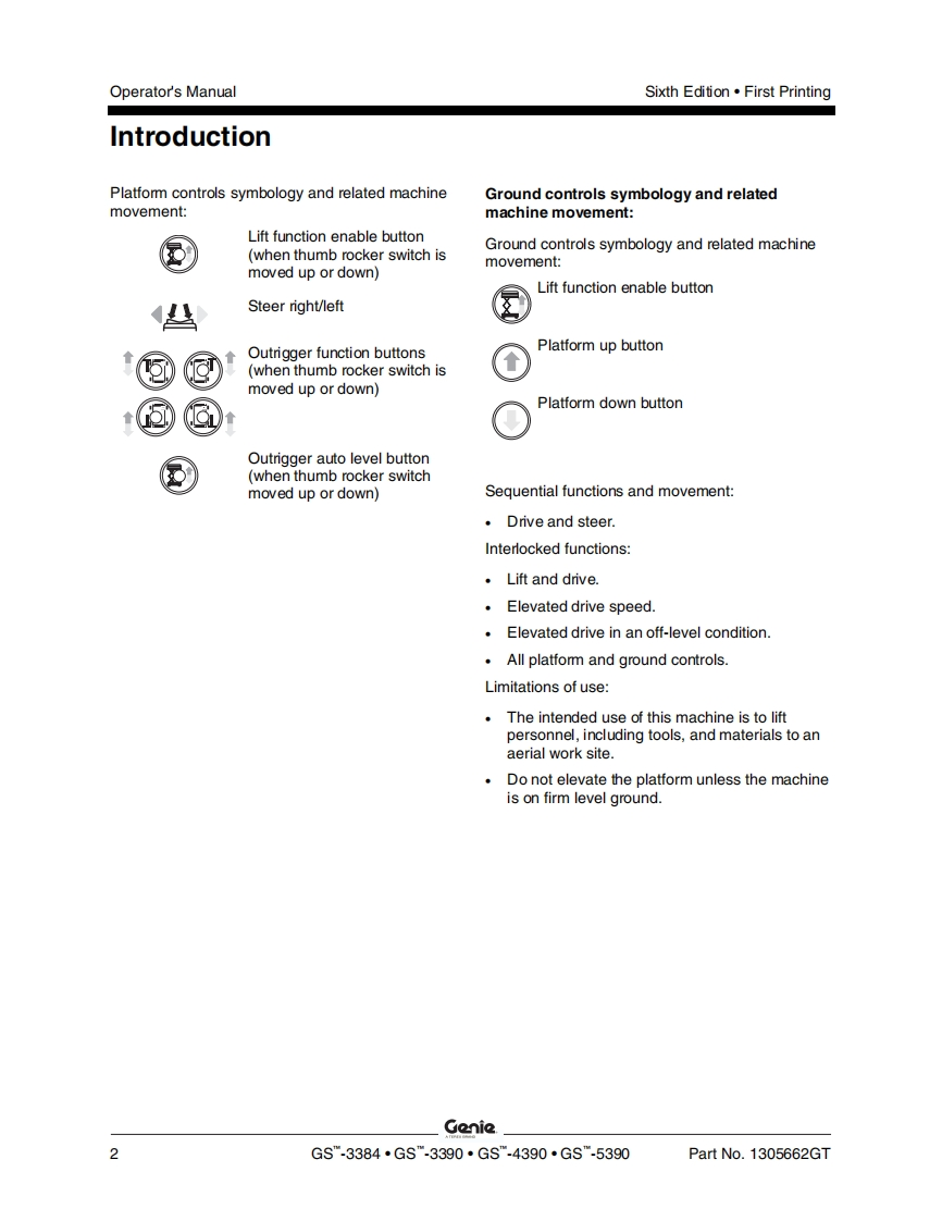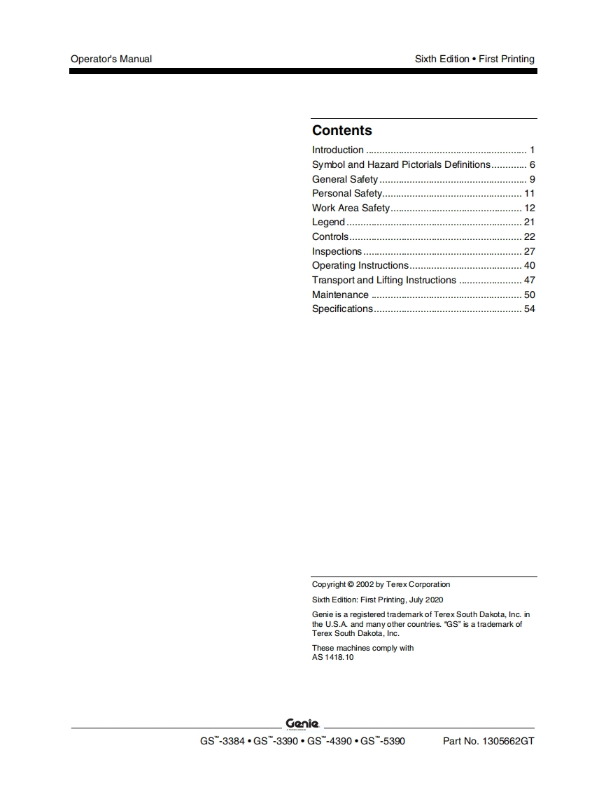 Genie-33884RT-Operators-Manual操作与维护保养说明书手册找手册网22小时前发布关注私信8.86MB60页022Genie-33884RT-Operators-Manual操作与维护保养说明书手册此内容为付费资源,请付费后查看¥19¥21黄金会员免费钻石会员免费立即购买您当前未登录!建议登陆后购买,可保存购买订单付费资源 第1页 / 共60页 第2页 / 共60页 第3页 / 共60页 第4页 / 共60页 第5页 / 共60页 第6页 / 共60页 第7页 / 共60页 第8页 / 共60页 第9页 / 共60页 第10页 / 共60页 试读已结束,还剩50页,您可下载完整版后进行离线阅读 THE ENDGENIE 文本预览 GenieA TEREX BRANDOperator's ManualGSm-3384from GS84F-46000from GS84D-401AUSAustraliaGSm-3390from GS90F-56000from GS90D-3201GSm-4390GSm.5390withMaintenanceInformationSixth EditionFirst PrintingPart No.1305662GT 查看更多 收起部分 喜欢就支持一下吧收藏