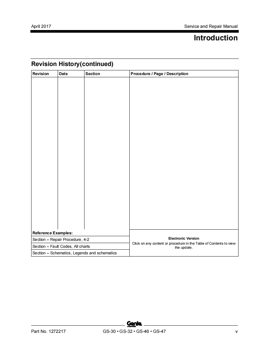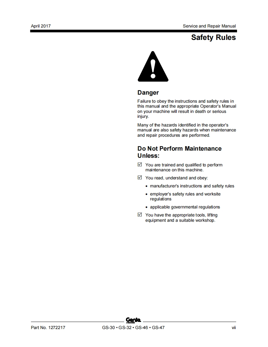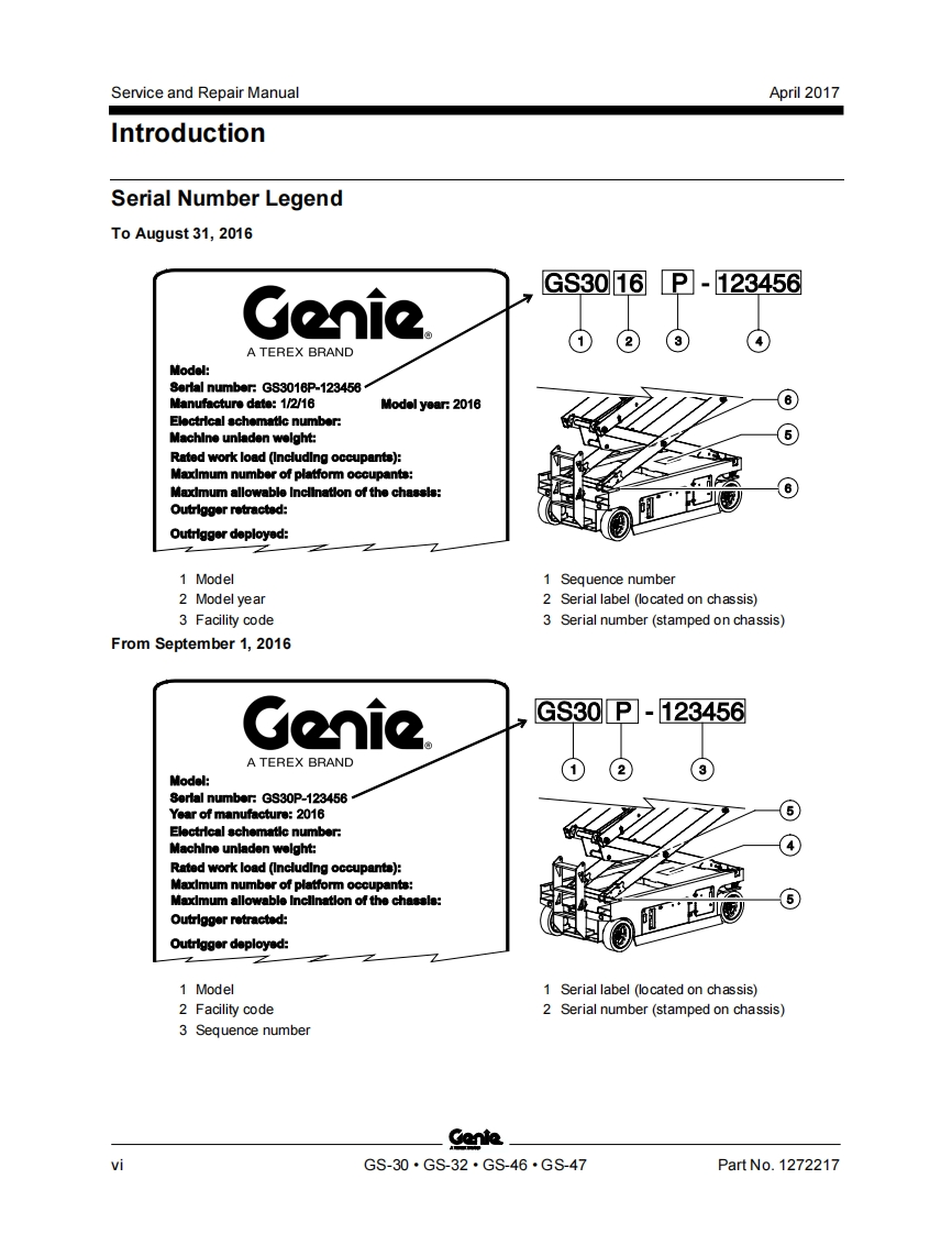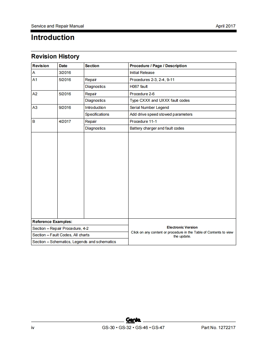 GenieA TEREX BRANDService and Repair ManualGS-1530/32This manual includes:Repair proceduresGS-1930/32Fault CodesElectrical andGS-2032Hydraulic SchematicsGS-2632GS-3232For detailed maintenanceGS-2046procedures,refer to theappropriate MaintenanceGS-2646Manual for your machine.GS-3246GS-4047Part No.1272217Rev BApril 2017