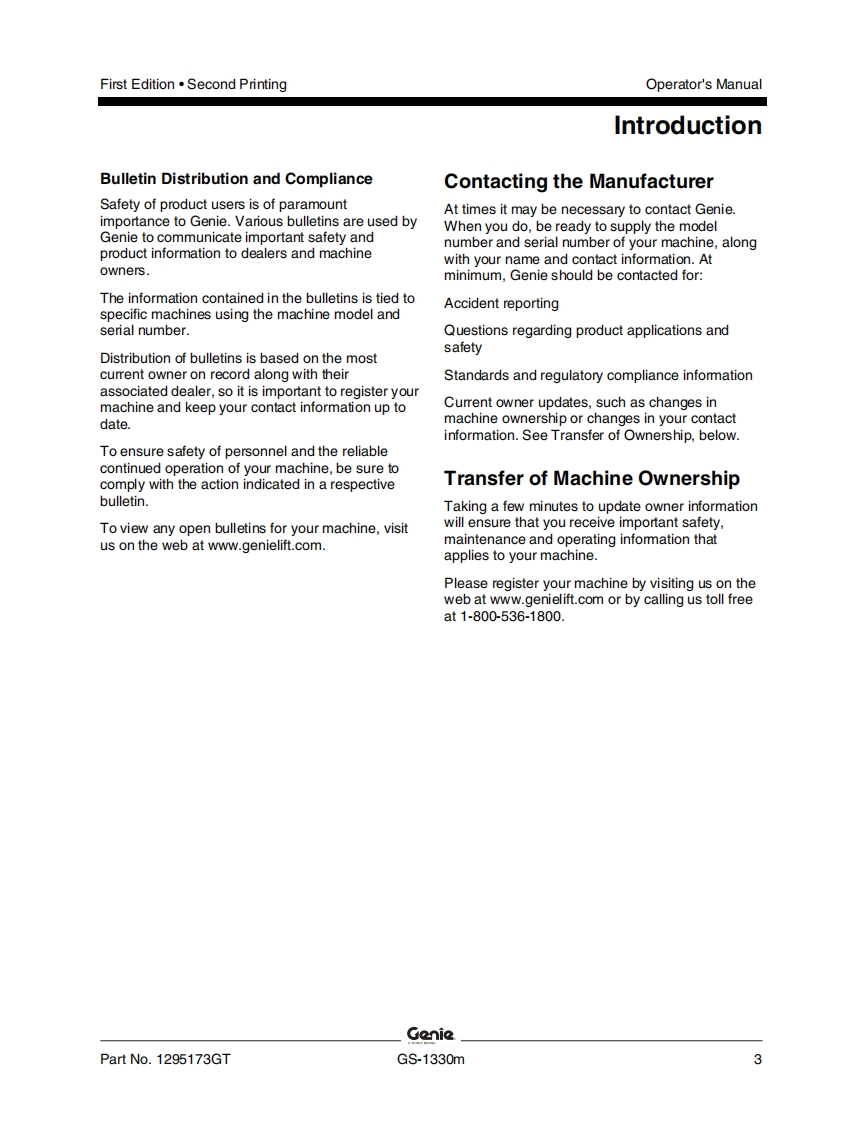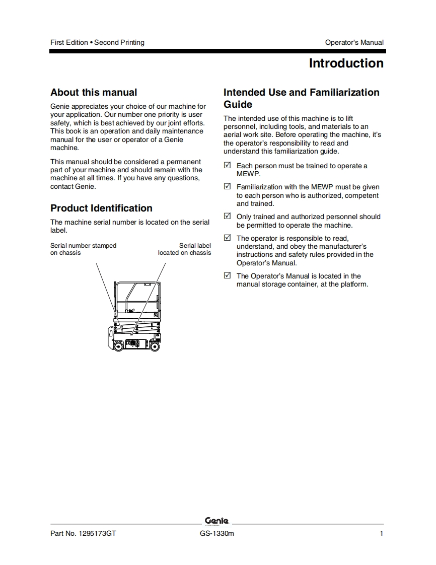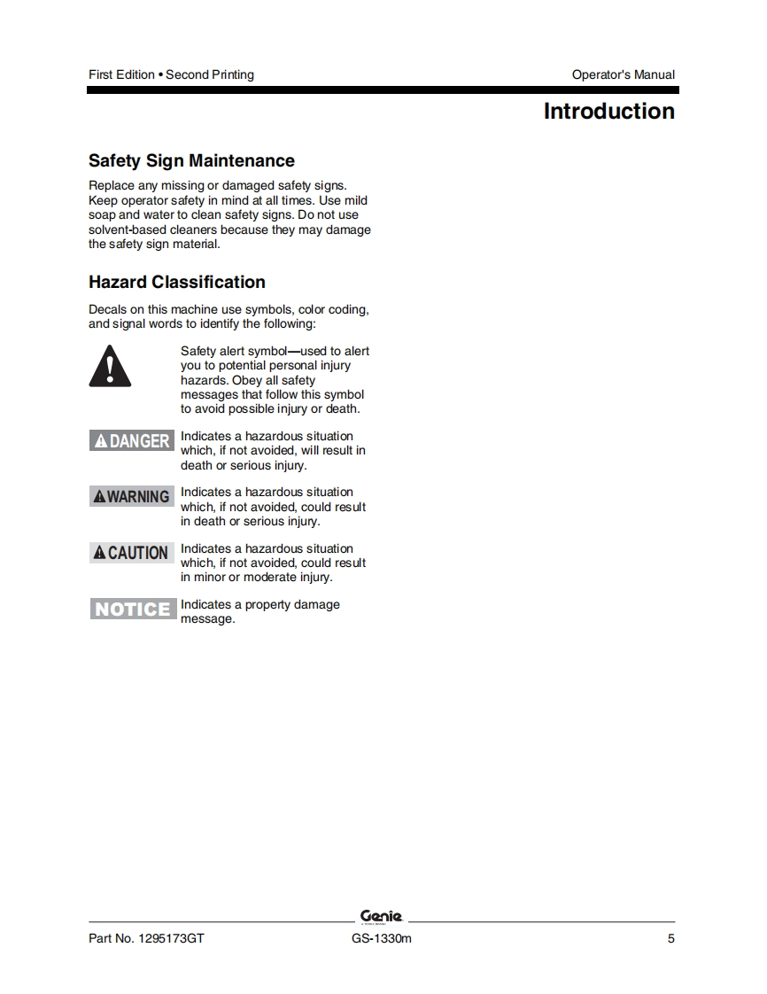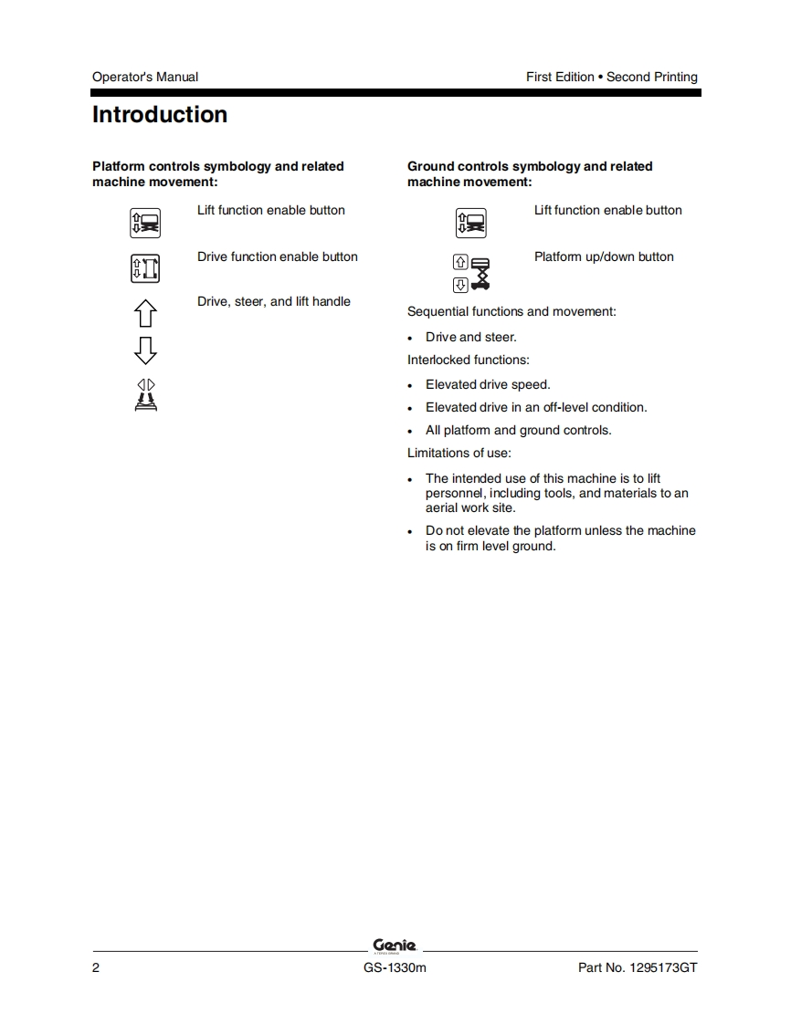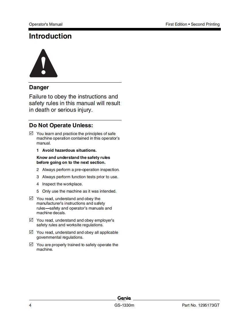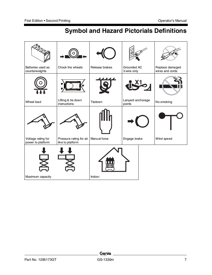 Genie-GS-1330m-Operations-Manual操作与维护保养说明书手册找手册网22小时前发布关注私信8.31MB55页035Genie-GS-1330m-Operations-Manual操作与维护保养说明书手册此内容为付费资源,请付费后查看¥19¥21黄金会员免费钻石会员免费立即购买您当前未登录!建议登陆后购买,可保存购买订单付费资源 第1页 / 共55页 第2页 / 共55页 第3页 / 共55页 第4页 / 共55页 第5页 / 共55页 第6页 / 共55页 第7页 / 共55页 第8页 / 共55页 第9页 / 共55页 第10页 / 共55页 试读已结束,还剩45页,您可下载完整版后进行离线阅读 THE ENDGENIE 文本预览 GenieA TEREX BRANDOperator's ManualSerial Number RangeGSTM-1330mfrom GS30MD-101AUSto GS30MD-3168AustraliawithMaintenanceInformationFirst EditionSecond PrintingPart No.1295173GT 查看更多 收起部分 喜欢就支持一下吧收藏
