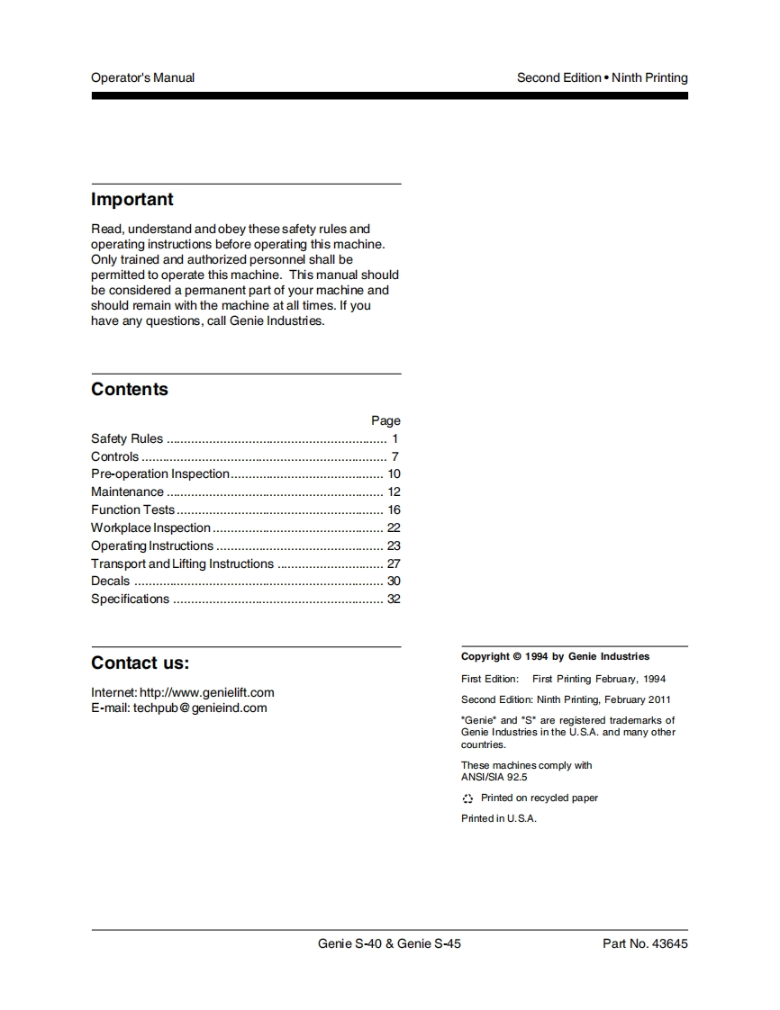 GENIE-s-40_45操作说明书手册找手册网22小时前发布关注私信0.54MB37页028GENIE-s-40_45操作说明书手册此内容为付费资源,请付费后查看¥19¥21黄金会员免费钻石会员免费立即购买您当前未登录!建议登陆后购买,可保存购买订单付费资源 第1页 / 共37页 第2页 / 共37页 第3页 / 共37页 第4页 / 共37页 第5页 / 共37页 第6页 / 共37页 第7页 / 共37页 第8页 / 共37页 第9页 / 共37页 第10页 / 共37页 试读已结束,还剩27页,您可下载完整版后进行离线阅读 THE ENDGENIE 文本预览 GenieOperator's ManualSecond EditionNinth Printingwith Maintenance InformationPart No.43645S"40S45from 832 to 7189 查看更多 收起部分 喜欢就支持一下吧收藏