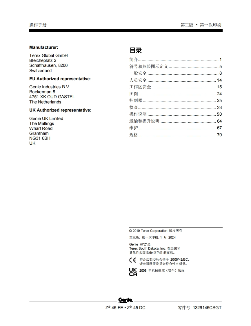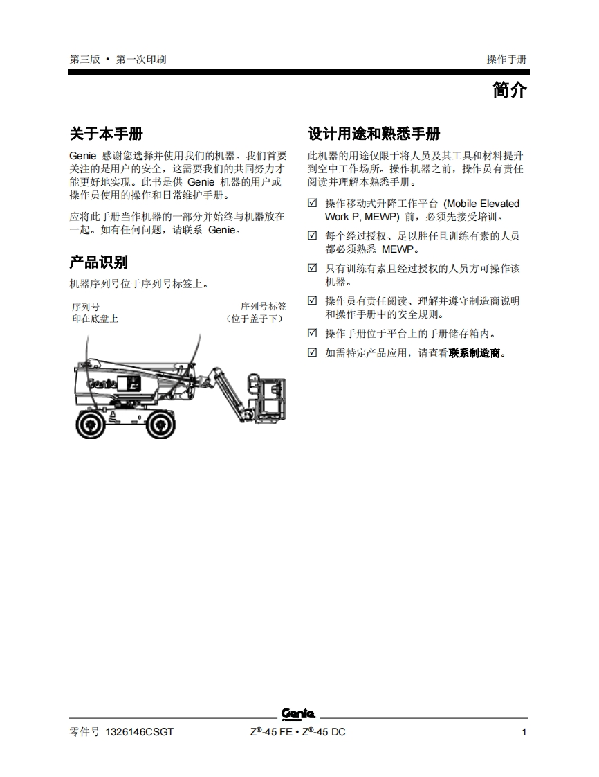 GENIE吉尼-.-.45-FE-®.45-DC-序列号范围曲臂吊高空作业平台操作说明书手册找手册网昨天发布关注私信3.56MB79页021GENIE吉尼-.-.45-FE-®.45-DC-序列号范围曲臂吊高空作业平台操作说明书手册此内容为付费资源,请付费后查看¥19¥21黄金会员免费钻石会员免费立即购买您当前未登录!建议登陆后购买,可保存购买订单付费资源 第1页 / 共79页 第2页 / 共79页 第3页 / 共79页 第4页 / 共79页 第5页 / 共79页 第6页 / 共79页 第7页 / 共79页 第8页 / 共79页 第9页 / 共79页 第10页 / 共79页 试读已结束,还剩69页,您可下载完整版后进行离线阅读 THE ENDGENIE 文本预览 GenieA TEREX BRAND操作手册序列号范围Z®.45FE蓝Z®.45DC带有维修信息原始说明的翻译Third EditionFirst PrintingPart No.1326146CSGT 查看更多 收起部分 喜欢就支持一下吧收藏