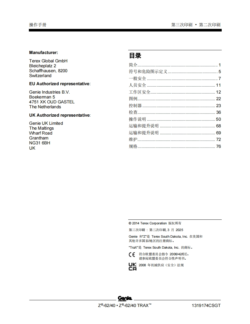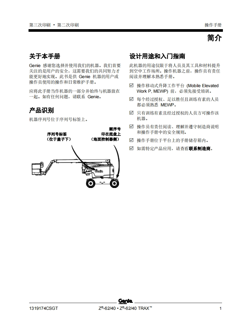 GENIE吉尼-.-.62_40-.-.62_40-TRAX…-序列号范围曲臂吊高空作业平台操作说明书手册找手册网22小时前发布关注私信5.16MB81页046GENIE吉尼-.-.62_40-.-.62_40-TRAX…-序列号范围曲臂吊高空作业平台操作说明书手册此内容为付费资源,请付费后查看¥19¥21黄金会员免费钻石会员免费立即购买您当前未登录!建议登陆后购买,可保存购买订单付费资源 第1页 / 共81页 第2页 / 共81页 第3页 / 共81页 第4页 / 共81页 第5页 / 共81页 第6页 / 共81页 第7页 / 共81页 第8页 / 共81页 第9页 / 共81页 第10页 / 共81页 试读已结束,还剩71页,您可下载完整版后进行离线阅读 THE ENDGENIE 文本预览 GenieA TEREX BRAND操作手册序列号范围Z®.62/40Z®.62/40 TRAXTM带有维修信息原始说明的翻译Third EditionSecond PrintingPart No.1319174CSGT 查看更多 收起部分 喜欢就支持一下吧收藏