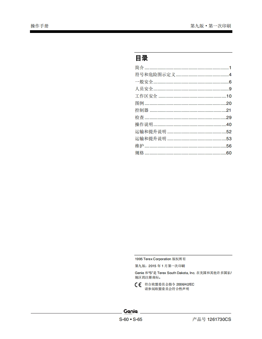GENIE吉尼-5-60-5.65曲臂吊高空作业平台操作说明书手册找手册网昨天发布关注私信5.02MB65页023GENIE吉尼-5-60-5.65曲臂吊高空作业平台操作说明书手册此内容为付费资源,请付费后查看¥19¥21黄金会员免费钻石会员免费立即购买您当前未登录!建议登陆后购买,可保存购买订单付费资源 第1页 / 共65页 第2页 / 共65页 第3页 / 共65页 第4页 / 共65页 第5页 / 共65页 第6页 / 共65页 第7页 / 共65页 第8页 / 共65页 第9页 / 共65页 第10页 / 共65页 试读已结束,还剩55页,您可下载完整版后进行离线阅读 THE ENDGENIE 文本预览 GenieA TEREX BRAND操作手册S-60CES-65带有维修信息原始说明的翻译Ninth EditionFirst PrintingPart No.1261730CS 查看更多 收起部分 喜欢就支持一下吧收藏