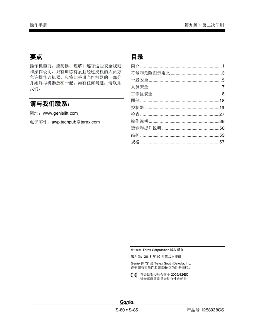 GENIE吉尼-6-80-6.85曲臂吊高空作业平台操作说明书手册找手册网22小时前发布关注私信4.40MB62页022GENIE吉尼-6-80-6.85曲臂吊高空作业平台操作说明书手册此内容为付费资源,请付费后查看¥19¥21黄金会员免费钻石会员免费立即购买您当前未登录!建议登陆后购买,可保存购买订单付费资源 第1页 / 共62页 第2页 / 共62页 第3页 / 共62页 第4页 / 共62页 第5页 / 共62页 第6页 / 共62页 第7页 / 共62页 第8页 / 共62页 第9页 / 共62页 第10页 / 共62页 试读已结束,还剩52页,您可下载完整版后进行离线阅读 THE ENDGENIE 文本预览 GenieA TEREX BRAND操作手册S-80CEs-85带有维修信息原始说明的翻译Ninth EditionSecond PrintingPart No.1258938CS 查看更多 收起部分 喜欢就支持一下吧收藏