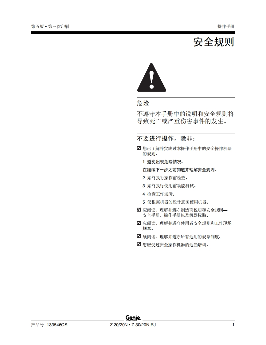 GENIE吉尼–30_20N–30_2ON-RJ(1)曲臂吊高空作业平台操作说明书手册找手册网22小时前发布关注私信0.98MB39页043GENIE吉尼–30_20N–30_2ON-RJ(1)曲臂吊高空作业平台操作说明书手册此内容为付费资源,请付费后查看¥19¥21黄金会员免费钻石会员免费立即购买您当前未登录!建议登陆后购买,可保存购买订单付费资源 第1页 / 共39页 第2页 / 共39页 第3页 / 共39页 第4页 / 共39页 第5页 / 共39页 第6页 / 共39页 第7页 / 共39页 第8页 / 共39页 第9页 / 共39页 第10页 / 共39页 试读已结束,还剩29页,您可下载完整版后进行离线阅读 THE ENDGENIE 文本预览 GonieA TEREX COMPANY操作手册Z.3020NZ-30/20N RJ包括维修信息原始说明的翻译Fifth EditionThird PrintingPart No.133546CS 查看更多 收起部分 喜欢就支持一下吧收藏