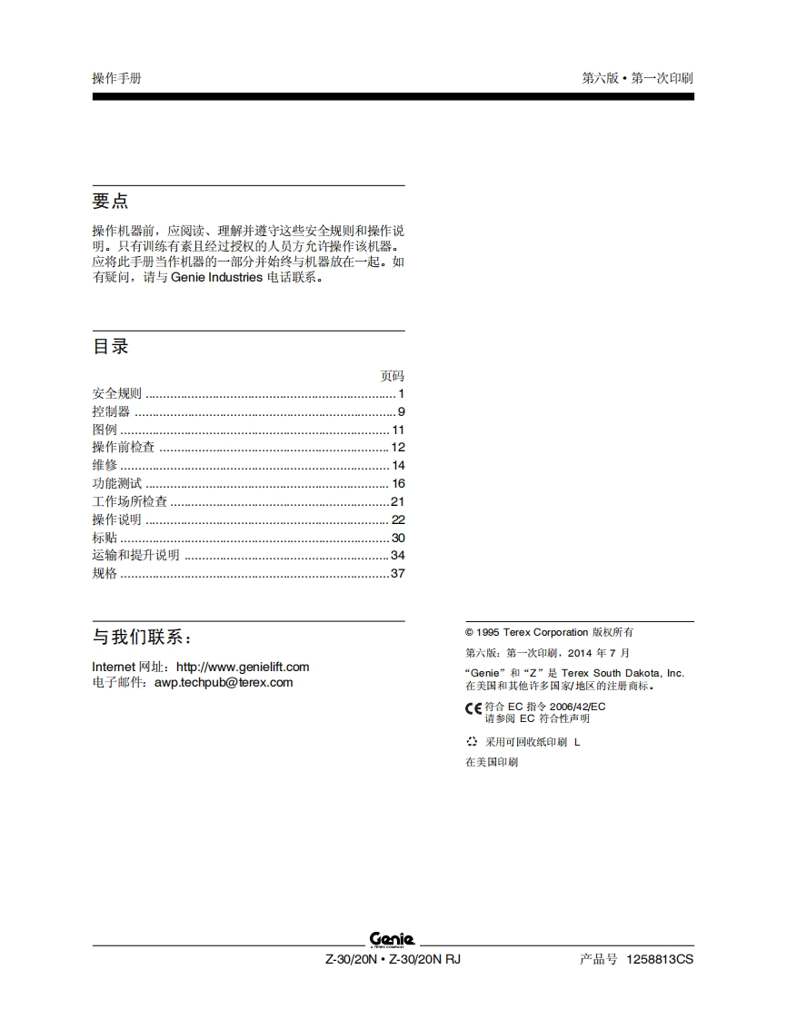 GENIE吉尼–30_20N–30_2ON-RJ曲臂吊高空作业平台操作说明书手册找手册网22小时前发布关注私信1.04MB42页025GENIE吉尼–30_20N–30_2ON-RJ曲臂吊高空作业平台操作说明书手册此内容为付费资源,请付费后查看¥19¥21黄金会员免费钻石会员免费立即购买您当前未登录!建议登陆后购买,可保存购买订单付费资源 第1页 / 共42页 第2页 / 共42页 第3页 / 共42页 第4页 / 共42页 第5页 / 共42页 第6页 / 共42页 第7页 / 共42页 第8页 / 共42页 第9页 / 共42页 第10页 / 共42页 试读已结束,还剩32页,您可下载完整版后进行离线阅读 THE ENDGENIE 文本预览 GenieA TEREX COMPANY操作手册Z-3020NZ-30/20N RJ包括维修信息原始说明Sixth EditionFirst PrintingPart No.1258813CS 查看更多 收起部分 喜欢就支持一下吧收藏