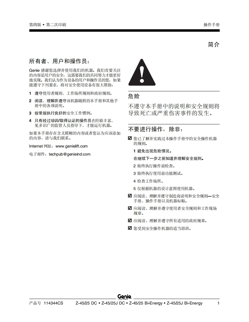 GENIE吉尼–45_25–45_25J-C-Power-.Energy-Power曲臂吊高空作业平台操作说明书手册找手册网22小时前发布关注私信2.39MB63页040GENIE吉尼–45_25–45_25J-C-Power-.Energy-Power曲臂吊高空作业平台操作说明书手册此内容为付费资源,请付费后查看¥19¥21黄金会员免费钻石会员免费立即购买您当前未登录!建议登陆后购买,可保存购买订单付费资源 第1页 / 共63页 第2页 / 共63页 第3页 / 共63页 第4页 / 共63页 第5页 / 共63页 第6页 / 共63页 第7页 / 共63页 第8页 / 共63页 第9页 / 共63页 第10页 / 共63页 试读已结束,还剩53页,您可下载完整版后进行离线阅读 THE ENDGENIE 文本预览 GonieA TEREX COMPANY操作手册Z-45/25ANSI/CSANorth AmericaSouth AmericaZ-45/25JAsiaAUSDC PowerAustraliaBi-Energy Power维修信息Fourth EditionSecond PrintingPart No.114344CS 查看更多 收起部分 喜欢就支持一下吧收藏