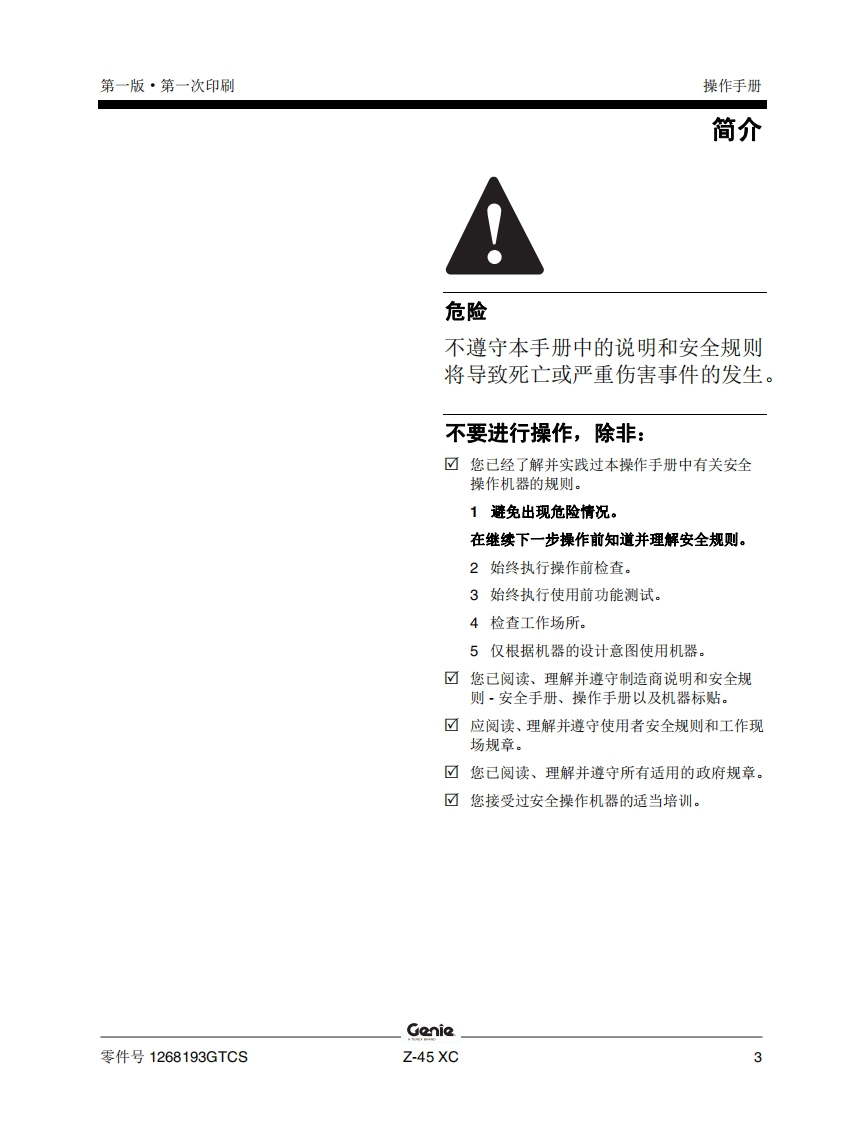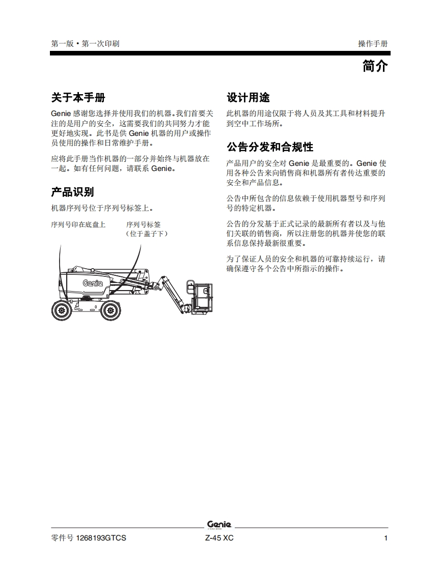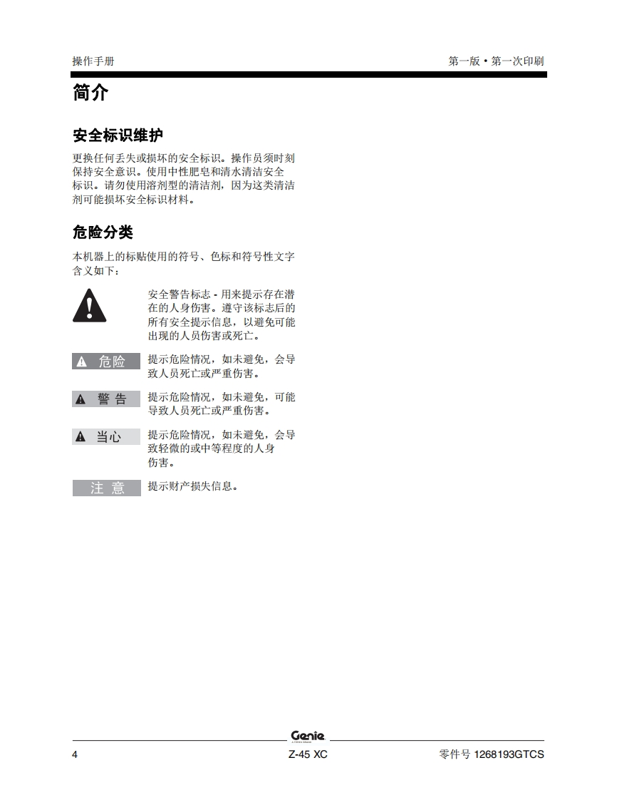 GENIE吉尼-45-XC曲臂吊高空作业平台操作说明书手册找手册网22小时前发布关注私信8.13MB61页027GENIE吉尼-45-XC曲臂吊高空作业平台操作说明书手册此内容为付费资源,请付费后查看¥19¥21黄金会员免费钻石会员免费立即购买您当前未登录!建议登陆后购买,可保存购买订单付费资源 第1页 / 共61页 第2页 / 共61页 第3页 / 共61页 第4页 / 共61页 第5页 / 共61页 第6页 / 共61页 第7页 / 共61页 第8页 / 共61页 第9页 / 共61页 第10页 / 共61页 试读已结束,还剩51页,您可下载完整版后进行离线阅读 THE ENDGENIE 文本预览 GenieA TEREX BRAND操作手册Z-45 XCCE带有维修信息原始说明的翻译First EditionFirst PrintingPart No.1268193GTCS 查看更多 收起部分 喜欢就支持一下吧收藏