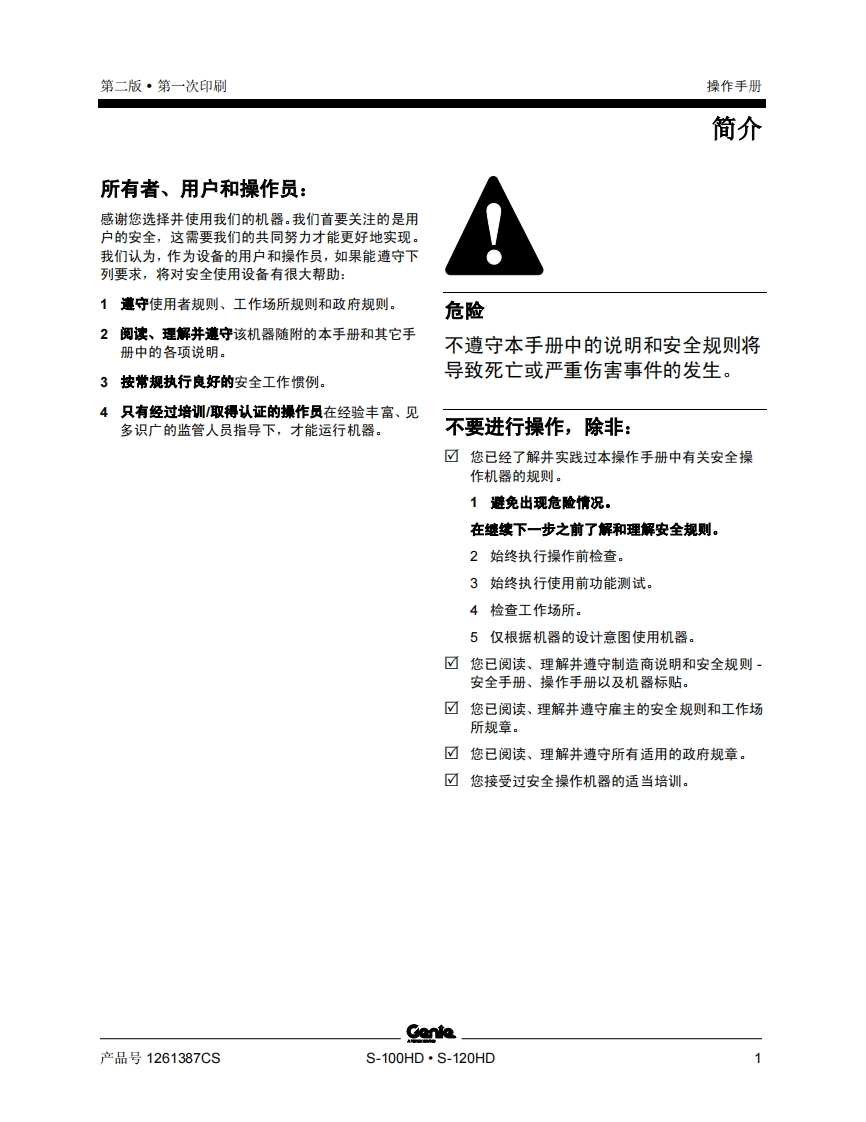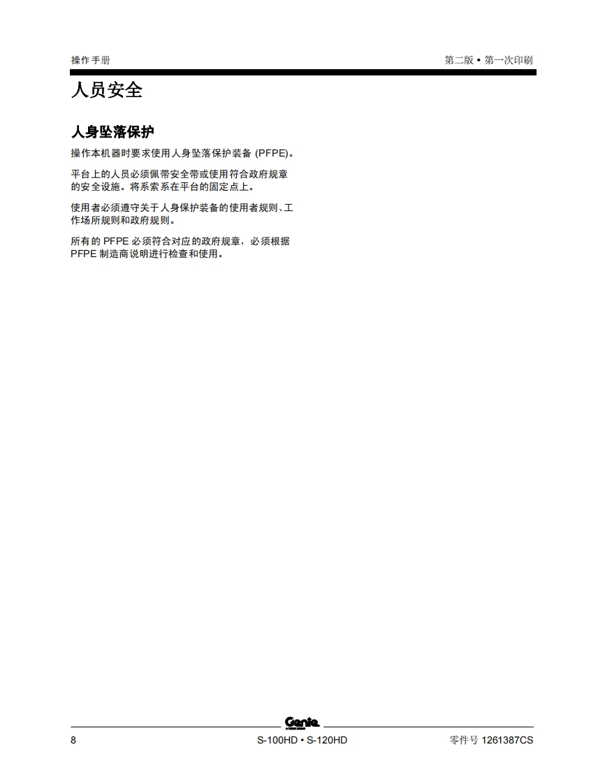 GENIE吉尼–100HD-6-120HD-从-S100HD15D-212-从-S120HD15D-208曲臂吊高空作业平台操作说明书手册找手册网22小时前发布关注私信3.05MB55页035GENIE吉尼–100HD-6-120HD-从-S100HD15D-212-从-S120HD15D-208曲臂吊高空作业平台操作说明书手册此内容为付费资源,请付费后查看¥19¥21黄金会员免费钻石会员免费立即购买您当前未登录!建议登陆后购买,可保存购买订单付费资源 第1页 / 共55页 第2页 / 共55页 第3页 / 共55页 第4页 / 共55页 第5页 / 共55页 第6页 / 共55页 第7页 / 共55页 第8页 / 共55页 第9页 / 共55页 第10页 / 共55页 试读已结束,还剩45页,您可下载完整版后进行离线阅读 THE ENDGENIE 文本预览 GenieA TEREX BRAND操作手册S-100HDCE从S100HD15D-212S-120HD从S120HD15D-208附带维护信息原始说明Second EditionFirst PrintingPart No.1261387CS 查看更多 收起部分 喜欢就支持一下吧收藏