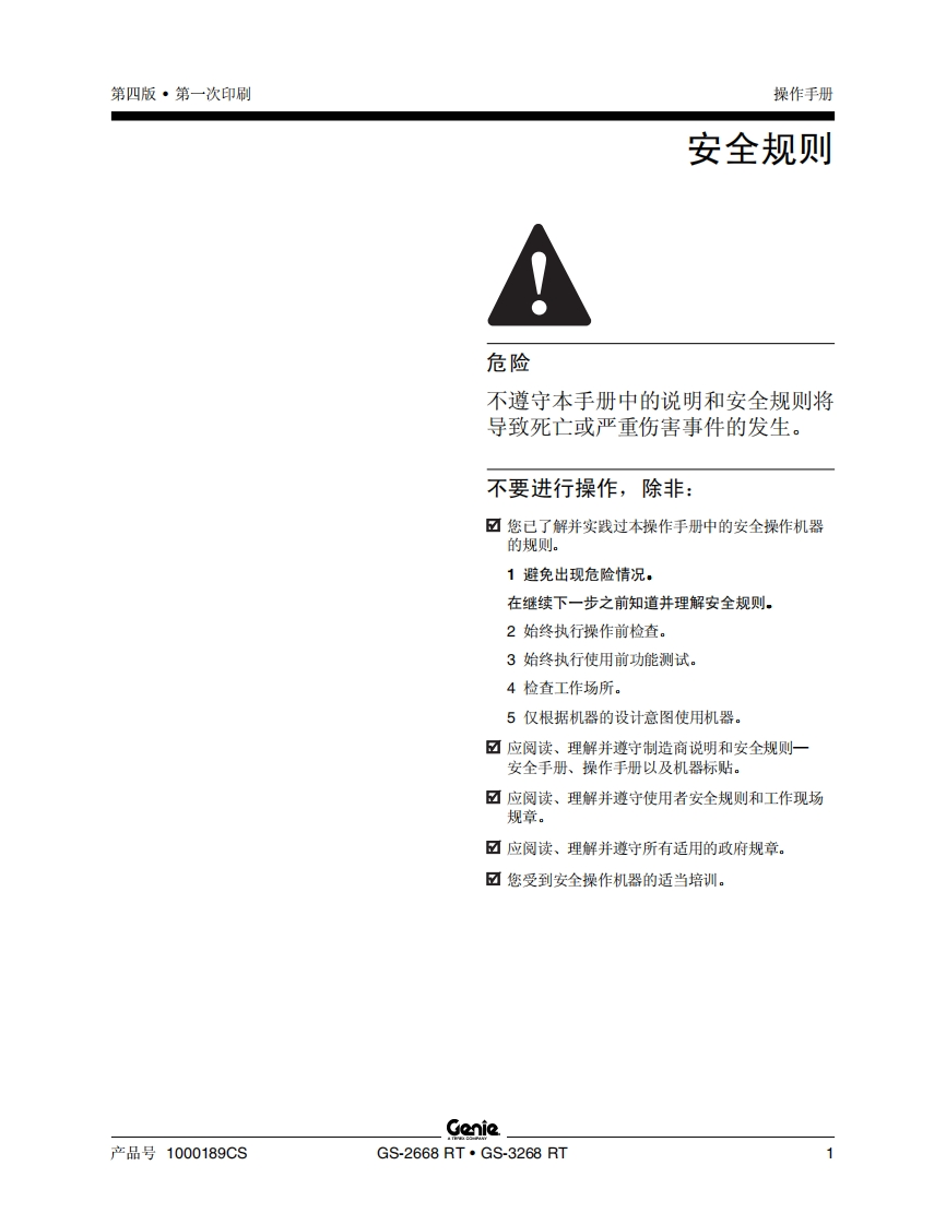 GENIE吉尼-GS-2668-RT-GS-3268-RT曲臂吊高空作业平台操作说明书手册找手册网22小时前发布关注私信7.15MB37页047GENIE吉尼-GS-2668-RT-GS-3268-RT曲臂吊高空作业平台操作说明书手册此内容为付费资源,请付费后查看¥19¥21黄金会员免费钻石会员免费立即购买您当前未登录!建议登陆后购买,可保存购买订单付费资源 第1页 / 共37页 第2页 / 共37页 第3页 / 共37页 第4页 / 共37页 第5页 / 共37页 第6页 / 共37页 第7页 / 共37页 第8页 / 共37页 第9页 / 共37页 第10页 / 共37页 试读已结束,还剩27页,您可下载完整版后进行离线阅读 THE ENDGENIE 文本预览 GonieGe-L操作手册Fourth EditionFirst Printing及维修信息Part No.1000189CSGS2668RTGS3268RT 查看更多 收起部分 喜欢就支持一下吧收藏